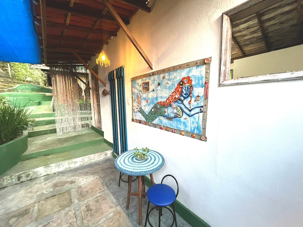 The Sereia Chalet is a cozy apartment with a fan and a beautiful window view. It features a double bed, private bathroom, workspace, and a hammock area outside. Attached is a fully equipped kitchen with a minifridge, electric stove, dishes, and cooking utensils. We have excellent internet, perfect for remote work. Set within one hectare of lush gardens, it’s a cool, quiet retreat surrounded by nature, just 10 minutes from the village center and 15 minutes from First Beach on foot.