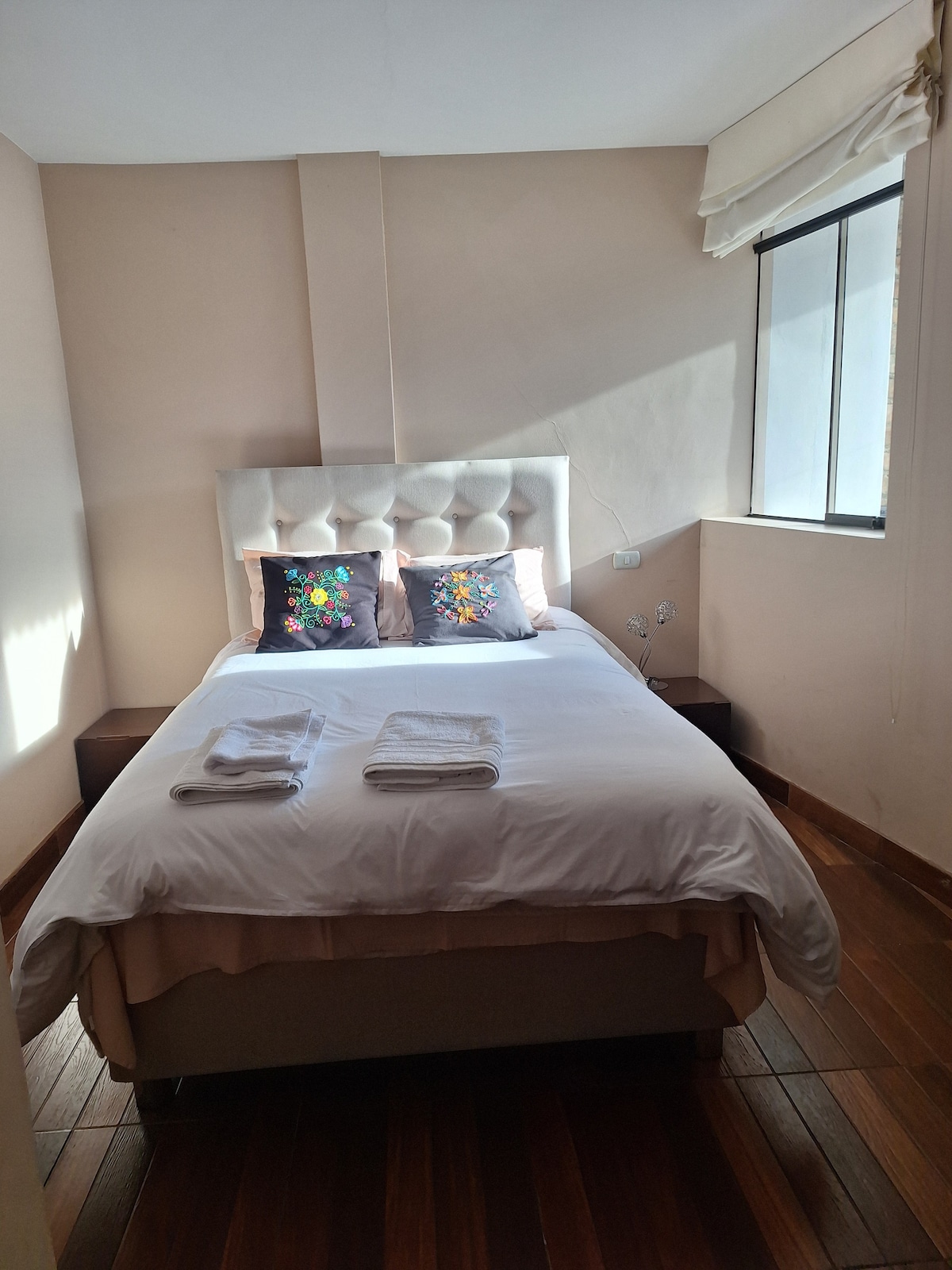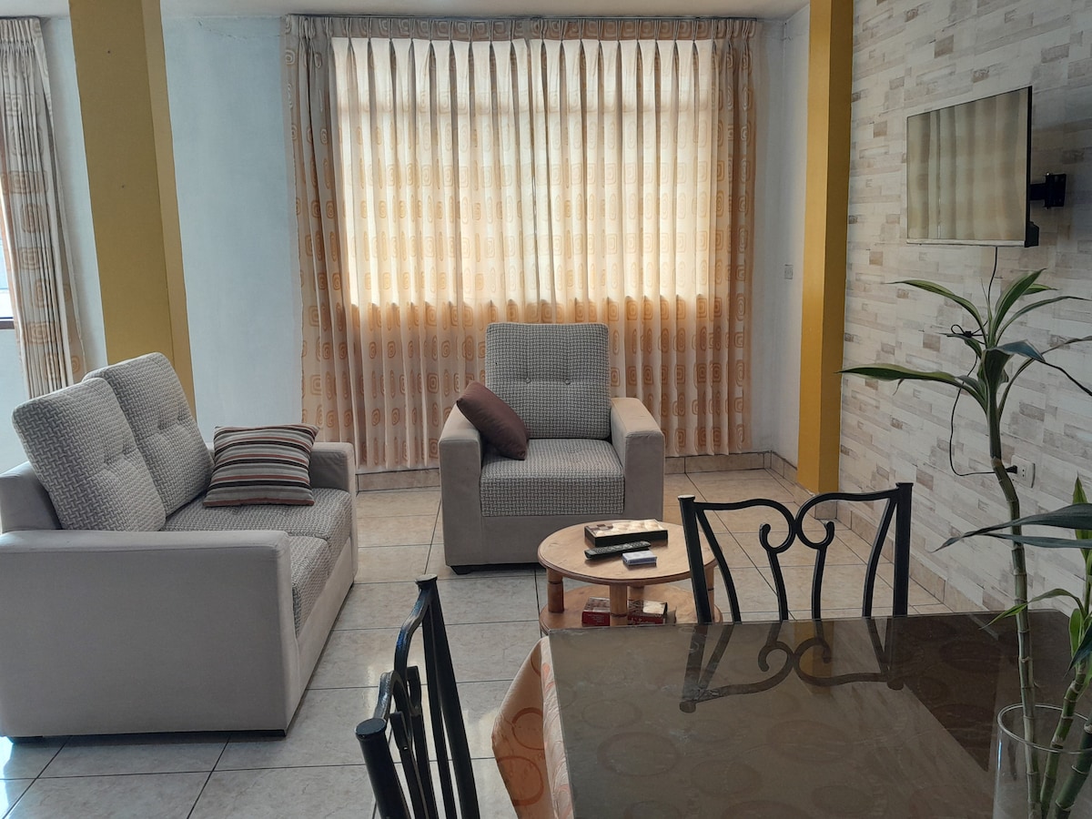 Jūsu ģimene būs tuvu visam, kad uzturēsieties šajā centrā esošajā mājoklī. Dzīvoklis ir pavisam jauns ar 2 guļamistabām, 2 gultām, 2 vannasistabām ar pilnu dušu, vienu divvietīgajā guļamistabā, mums ir dīvāngulta viesistabā, lai uzņemtu vēl vienu cilvēku, Wi-Fi, visas istabas ir ļoti labi apgaismotas. Atrodas Av. Vía de Evitamiento Norte, ļoti tuvu tirdzniecības centriem, 5 minūšu attālumā no Plaza de Armas laukuma.