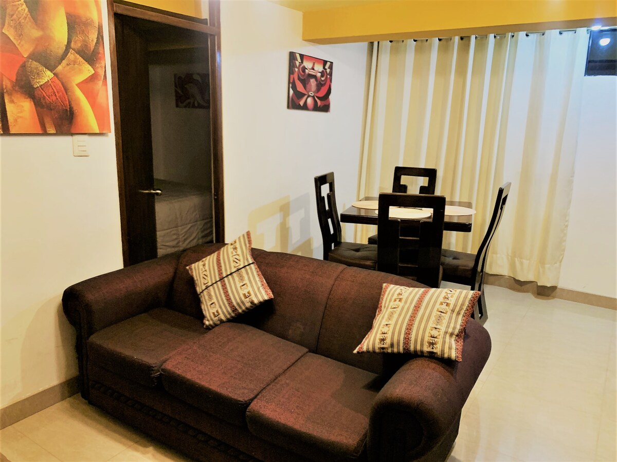 Skaists un moderns dzīvoklis ar divām guļamistabām un divām pilnībā aprīkotām vannasistabām, ko ieskauj noslēpumaini skati uz Svētās ielejas svētajiem kalniem. Miera un harmonijas telpa ar dabu, ļoti tuvu pilsētas centram, bet pietiekami tālu, lai mierīgi atpūstos, netraucējot troksni. Atklājiet Kalku Inku svētajā ielejā