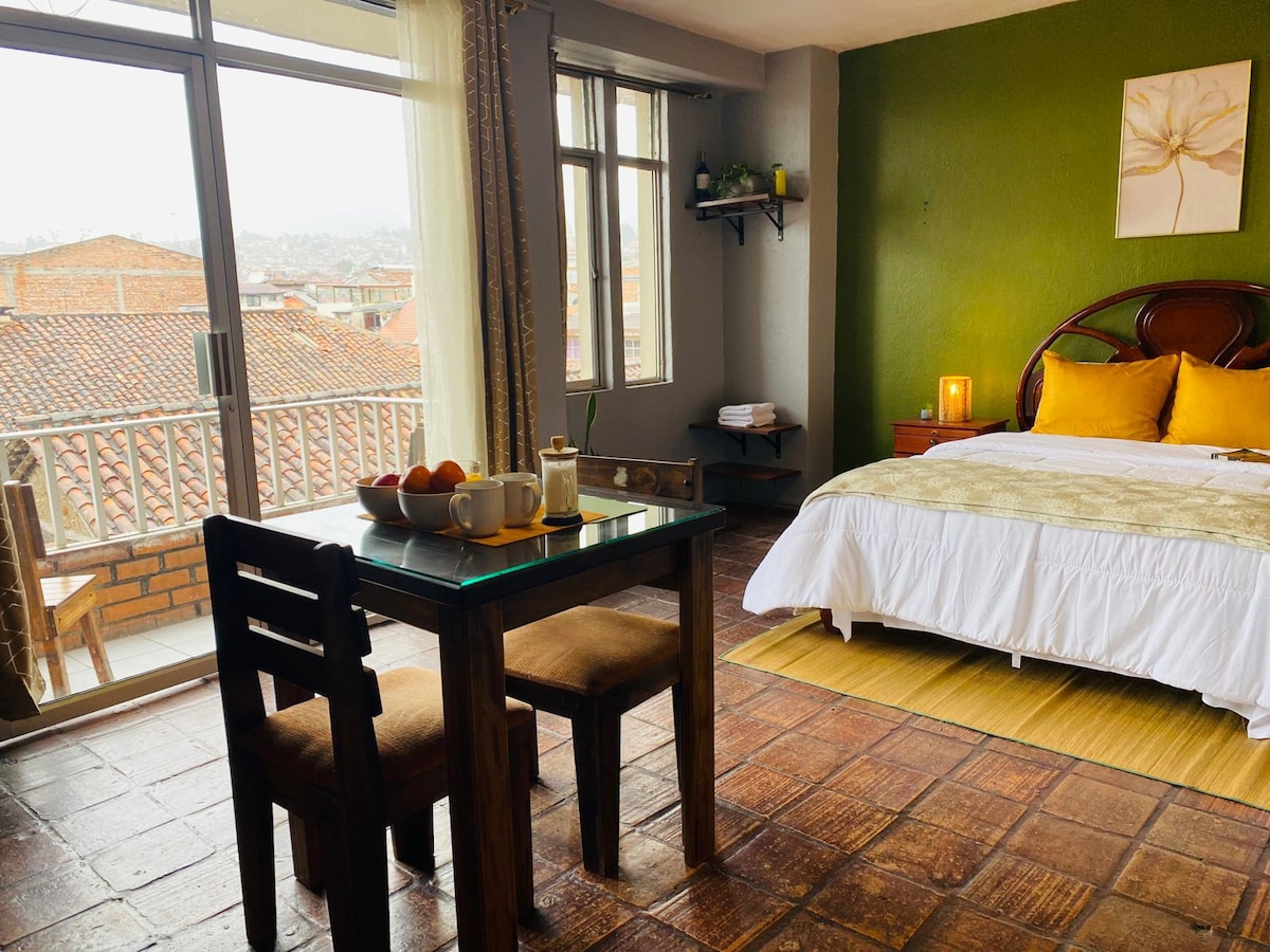 Luksusa numurs, kas atrodas modernā daudzdzīvokļu mājā tradicionālajā SANROKES apkaimē, vienā no gleznainākajām Kuenkas vietām. Izbaudiet šo mājīgo naktsmītni pilsētas centrā. Pastaigas attālumā no galvenajām tūrisma vietām un naktsdzīves. Apkaimē ir vairākas kafejnīcas, restorāni un bāri, jūs ieradīsieties pastaigājoties līdz Centro Historico, Rio Tomebamba, Universidad Central, Av. Remigio Crespo un daudz kas cits. Ir koplietošanas telpas un veļas mazgātavas.