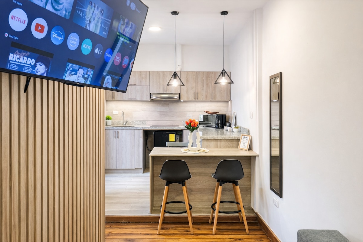 🌟 Iepazīstiet Kuenku no Suite 4 Rivers! 🌟 Šis numurs, kas ir ideāli piemērots ģimenēm vai nelielām grupām, apvieno komfortu un praktiskumu: 1 Dzīvojamā zona ar televizoru, dīvāngultu, ēdamgaldu un aprīkotu minivirtuvi; 1 guļamistaba ar divstāvīgu gultu: divvietīgs matracis zemāk un viens matracis virs tā; 1 Moderna vannasistaba ar dušu. Tikai 2,6 km attālumā no Mariscal Lamar lidostas tā ir ideāla vieta pilsētas iepazīšanai. Rezervējiet tūlīt un izbaudiet Kuenkas burvību!