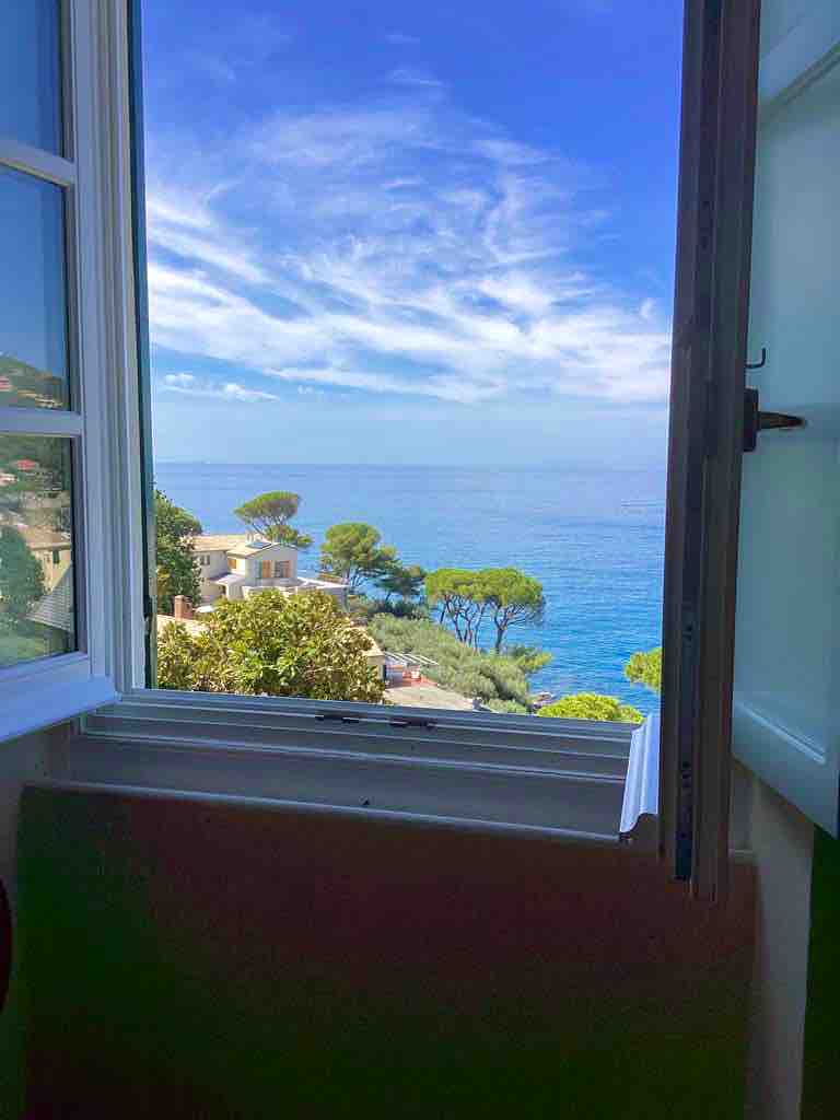 La casa è totalmente indipendente, immersa nel verde dell'uliveto ligure, con una vista mozzafiato sul Golfo Paradiso. Il panorama fruibile dalle terrazze e dalle finestre si apre dall'estremo ponente ligure al Monte di Portofino e nelle giornate limpide fino all'arcipelago toscano e la Corsica. Il mare (500 m.) Recco(1200 m.) il Parco Nazionale di Portofino(3km) sono raggiungibili oltre che in auto, anche a piedi con panoramiche passeggiate; Genova-Nervi dista 12 km (SS1 Aurelia)