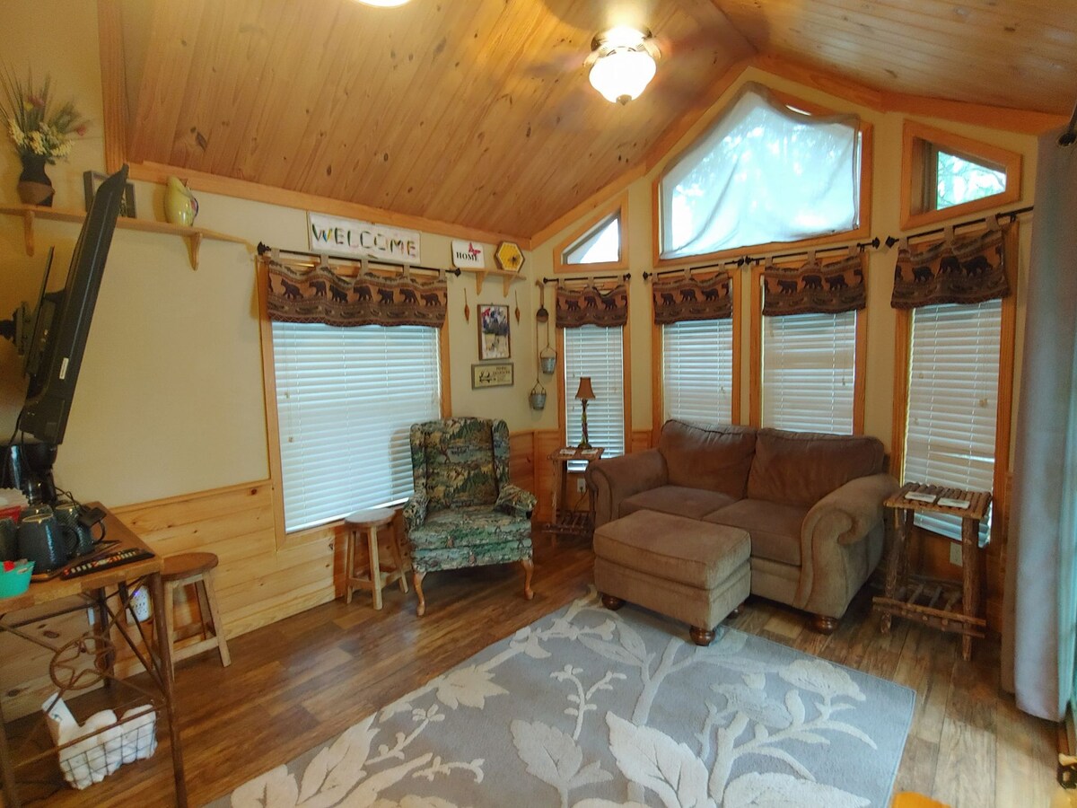 Atpūtieties kopā ar visu ģimeni mūsu skaistajā un mierīgajā A formas namiņā. Atrodas priežu mežā un pie jaukā Boba Sandlina ezera, Burning Daylight, ir jūsu mājas, kas atrodas tālu no mājām. Pilnībā aprīkota virtuve, divas vannasistabas ar atsevišķu ieeju, divstāvīga istaba ar vannasistabu un mājīgu loftu padara šo mājokli ideāli piemērotu lielai ģimenei vai pāris grupām! No aizmugures klāja paveras skats uz ezeru klusiem rītiem ar tasi kafijas, savukārt laivu namiņš un piestātne ir lieliska vieta visām ezera aktivitātēm.