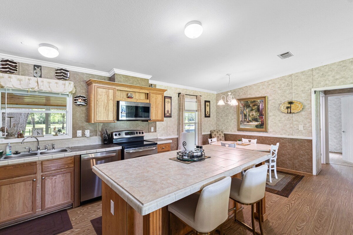 Ērti atrodas Leikdistriktā, Floridā, aptuveni stundas attālumā no pludmalēm, tematiskajiem parkiem un Orlando lidostas, bet tikai dažu minūšu attālumā no Okalas nacionālā meža un skaistiem dabiskajiem avotiem. Mums šeit ir daudz savvaļas dzīvnieku: putni, gatori, lāči, ķirzakas un daudz kas cits. Smēķēšana ir atļauta, bet tikai ārpus telpām. Mūsu mājoklis ir vislabāk piemērots pāriem vai atsevišķiem ceļotājiem. Maksimālais divu personu skaita ierobežojums. Nav bērnu. Nav papildu viesu. Mūsu īpašumā nav atļautas ballītes. Mājdzīvnieki ir laipni gaidīti