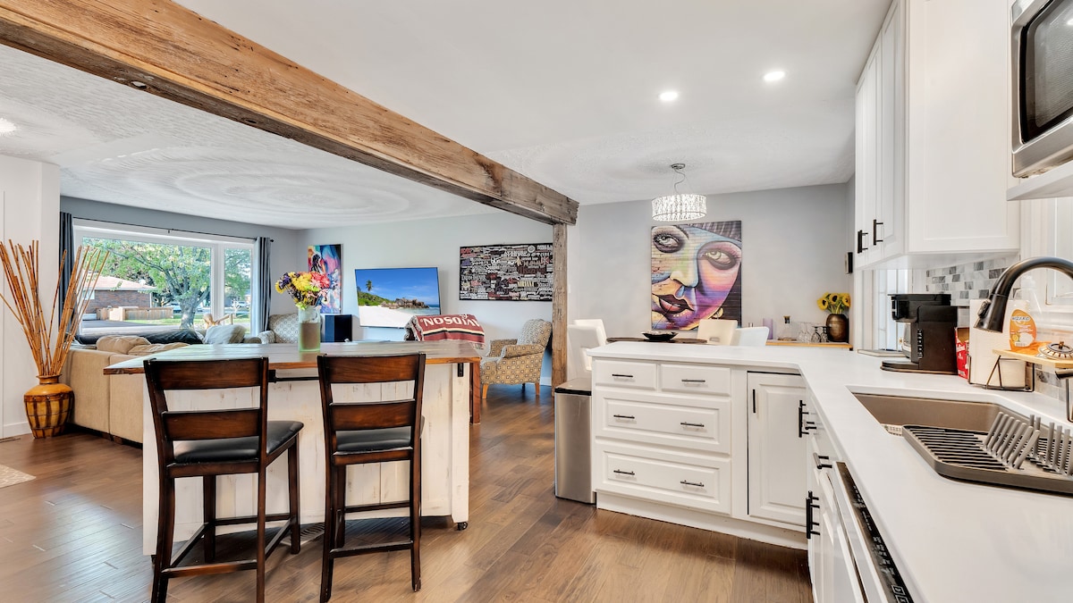 Laipni lūdzam mūsu 1845. gada bruģakmens mājoklī! Pilnībā atjaunots un pārbūvēts, domājot par komfortu. Mēs to saucam par kotedžu, bet tā ir [tagad] īpaši labi uzbūvēta māja ar vairāk nekā100 akriem lauku, dīķi un takām, ko izpētīt! Jūsu lietošanai ir iekļauta Ontārio parku vasaras caurlaide. Veicot rezervāciju, redzēsiet, ka HST ir pievienots cenai par nakti un uzkopšanas maksai, un pašvaldības izmitināšanas nodoklis tiek pievienots tikai jūsu cenai par nakti. Uzturieties mājokļus, kas ir ilgāki par 29 dienām, ir atbrīvoti no abiem šiem nodokļiem.