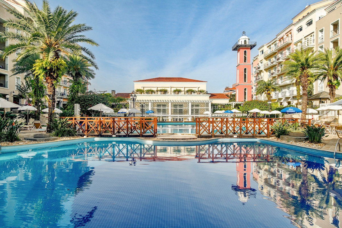 Luksusa kūrorts blakus pludmalei. Daudzdzīvokļu nams ar skatu uz okeānu.