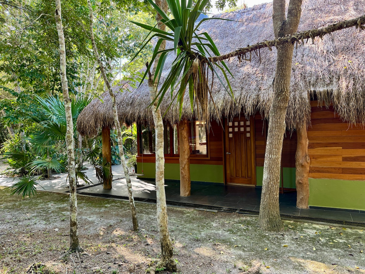 nuestra cabaña rodeada de naturaleza con las comodidades que requieres para hacer de esta aventura una gran aventura, te ofrece cenote, piscina, baños de barro, carbón activado y la oportunidad de estar en un temazcal guiado por un experto en la materia. Our cabin surrounded by nature with the comforts you need to make this adventure a great adventure, offers you cenote, swimming pool, mud baths, activated charcoal and the opportunity to be in a temazcal guided by an expert in the field.