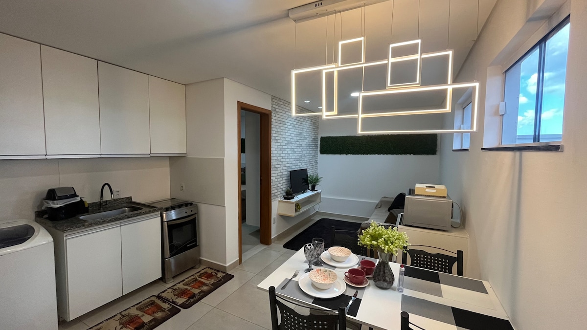 Ārkārtīgi elegants lofts ar visām augstākās klases mājokļa detaļām. Pilnībā aprīkota virtuve ar plīts virsmu, elektrisko cepeškrāsni,ledusskapi un traukiem Schimidt un Tânia Bulhões. Telpā ir 43p 4K LG televizors. Itāļu ādas dīvāns. EMMAS vācu tehniskā matrača karalienes gulta. Trousseau un Tok Stok gultas spēles. Vannasistaba ir plaša,labi iekārtota un tajā vienmēr ir dvieļi ar lielu svaru saskaņotās spēlēs. Pilsēta un čības. Dažādi neatliekamās higiēnas priekšmeti.