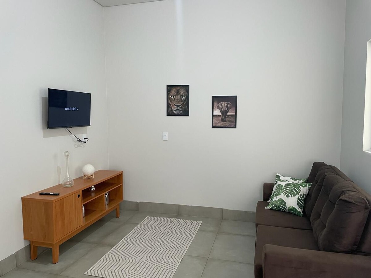 Atpūtieties šajā klusajā, stilīgajā mājā. Ideāli piemērots ģimenei vai uzņēmumam. Casa novinha, gatavots ar lielu pieķeršanos. pilnībā mēbelēta māja, kas sagatavota ar lielu mīlestību, lai labāk kalpotu jums. Lieliska atrašanās vieta, un tajā ir iekļauta gulta, galds, vanna un virtuve. ideāli piemērots tiem, kas ierodas darba darīšanās vai pastaigā.