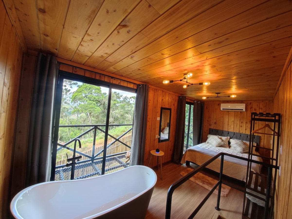 Uzmanību! Augsts risks iemīlēties šajā konteineru namiņā ar skatu uz Pedra do Baú! Container do Beijo atrodas 15 km attālumā no Campos do Jordão pilsētas centra, un tā apkārtnē ir burvīga ainava un romantiskas iespējas dabas vidū. Nekļūdieties, tas, ka atrodaties nomaļā vietā, nemazina šīs naktsmītnes drošību un nevainojamo komfortu. Piezīme: lai piekļūtu naktsmītnei, ir jābrauc pa zemes ceļu.