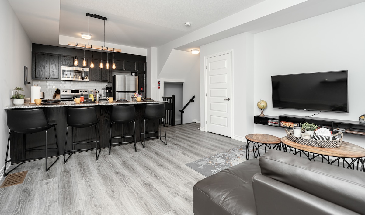 Izbaudiet uzturēšanos šajā nesen atjaunotajā mājoklī ar plašu bezmaksas autostāvvietu, kur jūs atradīsieties centrā tikai 10 minūšu attālumā no pilsētas centra ar ērtu piekļuvi automaģistrālēm un papildērtībām. Mazāk nekā piecu minūšu brauciena attālumā atrodas Costco, Loblaws, Tim Hortons, LCBO un Blair LRT stacija. Māja piedāvā lielu privātu, pilnībā iežogotu pagalmu un plašu klāju. Izbaudiet atpūtas zonu ar āra stīgu gaismām un grauzdētu gāzes ugunsdzēsības galdu vēsajām naktīm. Mājā ir pieejams arī 2. līmeņa elektromobiļu lādētājs.