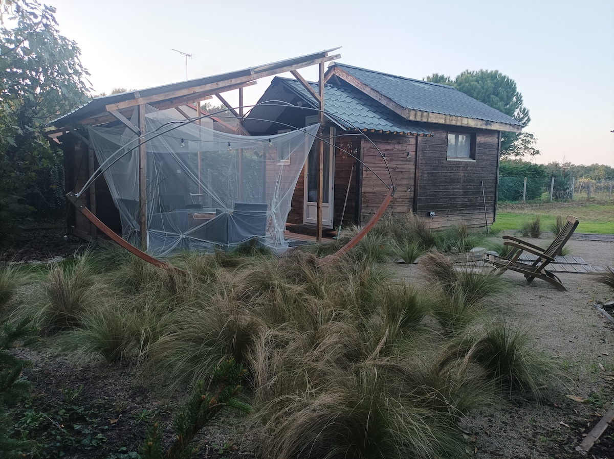 Petite maisonnée de 6m2 avec terrasse couverte et grand filet de détente suspendu, perchée au milieu des arbres dans un cadre calme. Première présence humaine (nous !) à 200m : vous serez bien seul au milieu des bois. L’accès à pied pendant 300m comporte une partie à forte pente. Café et thé sont à disposition. Nous proposons des repas maison. Linge de lit fourni, linge de toilette non fourni. Communication via Airbnb, car le téléphone ne capte pas bien chez nous (dans la cabane c’est bon).
