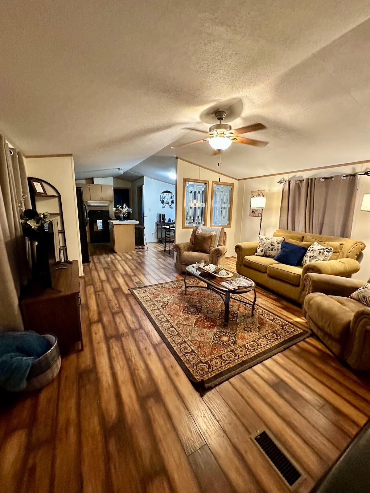 Izbaudiet karūsas makšķerēšanu pie piestātnes , bbqing zem segtās terases, stāvot pie vienas no divām āra ugunskura vietām, kas gatavo maurus kopā ar bērniem, vai vienkārši vērojiet, kā plūst liesmas. Šis 3 guļamistabu/3 vannu mobilais mājoklis ir tīrs un gatavs ģimenei vai nelielai grupai, lai izbaudītu nedēļas nogales atpūtu no reālās pasaules. Mēs izmantojam šo mājokli kā "vasaras māju", lai gan tas atrodas tikai dažu minūšu attālumā no mūsu dzīvesvietas. Mēs izturamies pret Kotilu kā pret lielu peldbaseinu, un mums patīk šeit izklaidēt ģimeni un draugus, kā arī vienkārši aizbēgt .