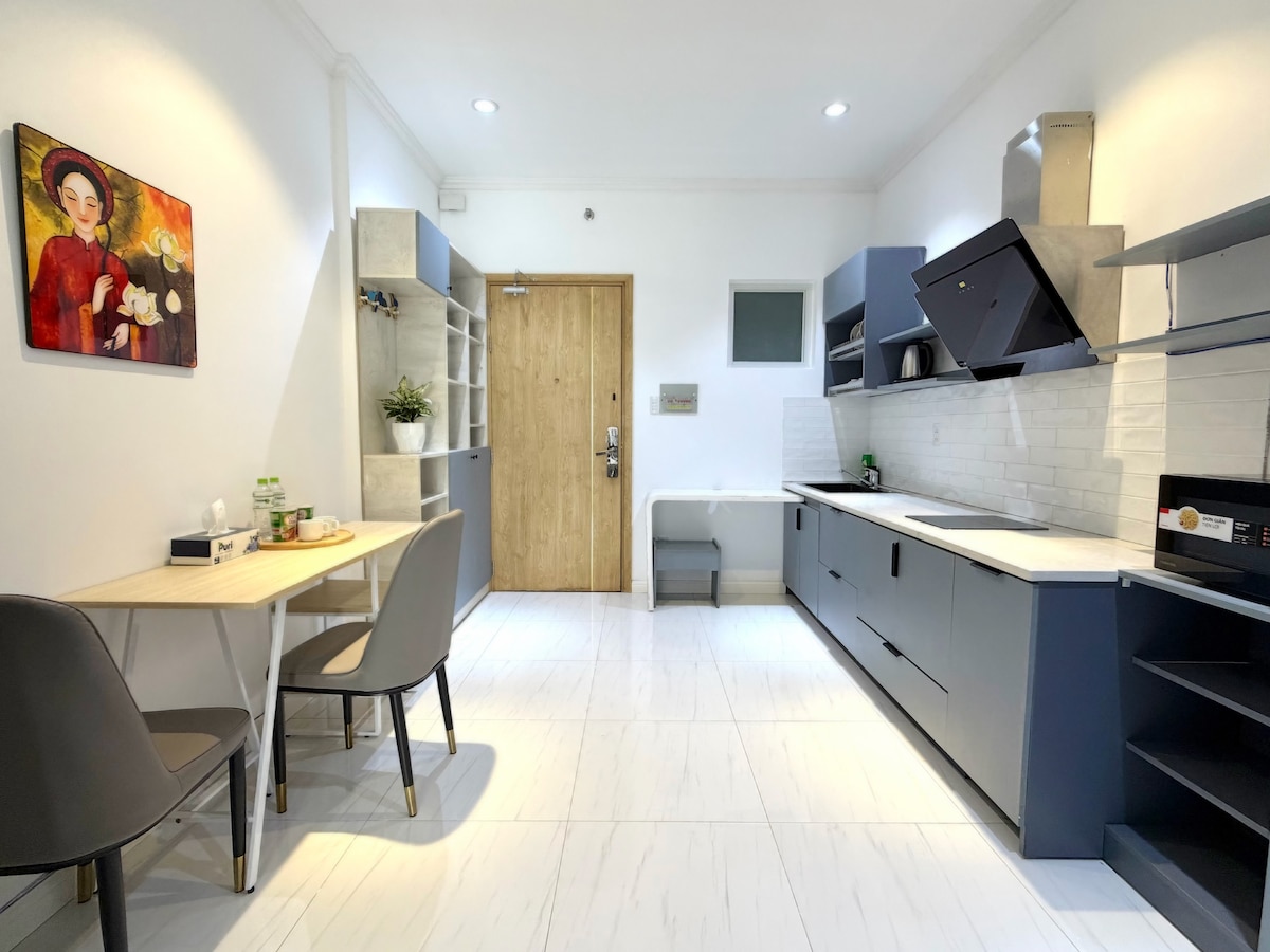 Augstas klases dzīvoklis ar skaistu skatu Long Xuyen pilsētas centrā. - Netālu no vietējiem tirgiem un lielveikaliem: Coop, Vincom, Mega, Walking Street, nakts tirgus, baznīca, universitāte. - 32 m2 ar guļamistabu, tualeti, viesistabu, kas pilnībā aprīkota ar modernām mēbelēm: plakanā ekrāna televizoru, ledusskapi, dīvānu, elektromagnētisko plīti, veļas mašīnu, gaisa kondicionētāju, ūdens sildītāju… Jūs vienkārši ņemat līdzi koferi.