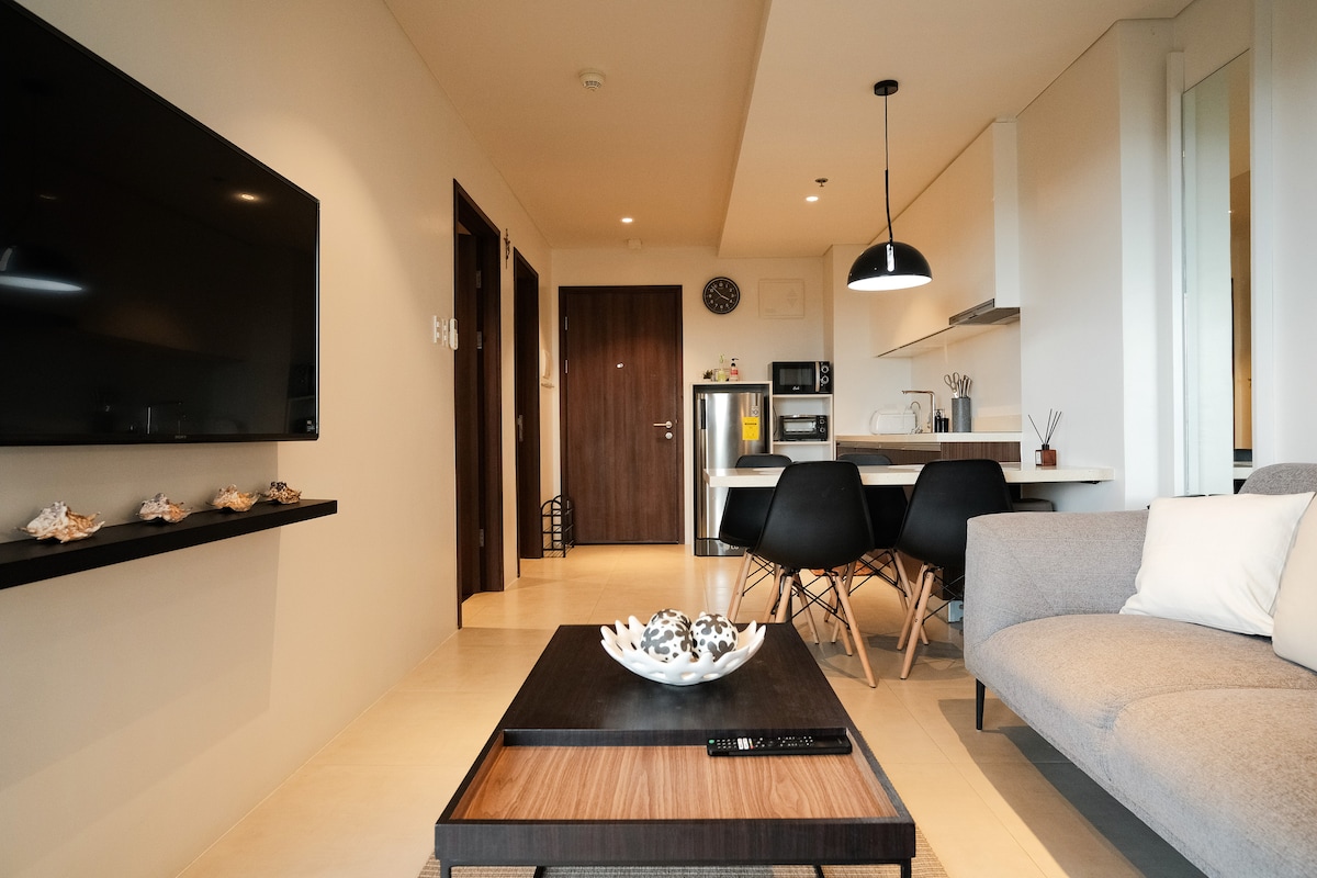 Laipni lūdzam Royal Staghorn - luksusa dzīvoklī Tambuli piejūras kūrortā! Izbaudiet ideālu greznības, komforta un ērtību apvienojumu mūsu skaisti iekārtotajā 47 kv.m dzīvoklī, kas atrodas prestižā Tambuli Seaside Resort & Spa 18. stāvā. No šī ekskluzīvā mājokļa paveras elpu aizraujošs skats uz pilsētu un jūru. ✔ Divguļamā gulta + 1 dīvāngulta ✔ Luksusa minivirtuve ✔ 200 Mb/s ātrdarbīgs Wi-Fi ✔ 55collu viedtelevīzija ✔ Veļas mazgājamā mašīna un žāvētājs ✔ Privāts balkons ar skatu uz pilsētu un jūru ✔ Kūrorta papildērtības