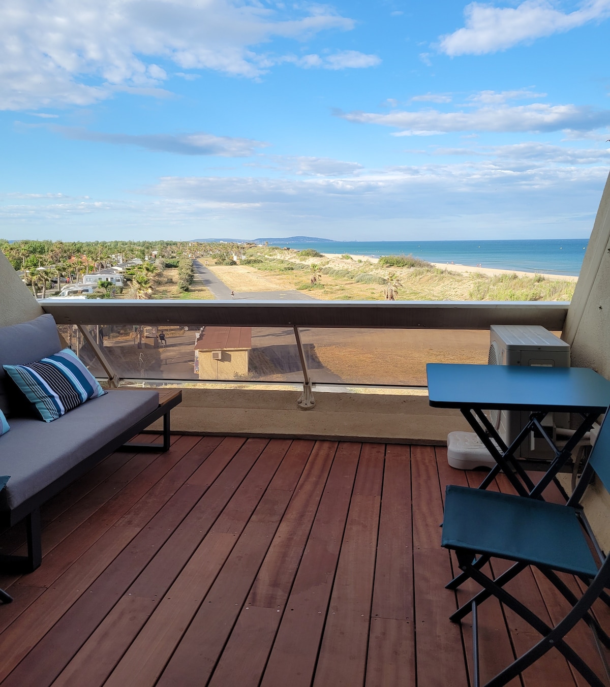 PABEIGTA RENOVĀCIJA 23 Brīnišķīgs skats uz jūru un pludmali...No koka terases varat brokastot saullēktā ar skatu uz jūru, nosnausties uz dīvāna vai baudīt aperitīvu un baudīt saulrietu. Šī studija, kas atrodas Héliopolis rezidences 3. stāvā (ar liftu), ir pilnībā aprīkota (gaisa kondicionētājs, 160x200 gulta, daudz mantu glabātuves, vannasistaba, atsevišķs WC, minivirtuve). Ir pieejama gultasveļa un dvieļi, kā arī Wi-Fi un privāta autostāvvieta.