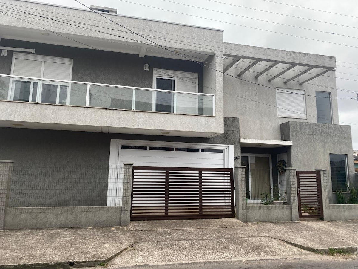 Māja, ko rotā lielas un gaisīgas istabas. Ar 4 guļamistabām ;2 apartamentiem un 2 amerikāņu apartamentiem ar Split, 4 divguļamajām gultām un 2 vienguļamajiem matračiem, 4 vannasistabām. Istaba ar kamīna integrētu vidi, dzīvojamo istabu, ēdamistabu un virtuvi. Dois Grandes dīvāni, kabeļtelevīzija 65collu, alexa, mikroviļņu krāsns, elektriskā cepeškrāsns, smalcināšanas tornis. Lielisks zāliens sānos ar ārēju grilu, kas ir arī grils un elareira, dārza mēbeles un šūpuļtīkls. Viss, lai jūs varētu izbaudīt iekšējo un ārējo telpu, ir pieejams un apskatāms.