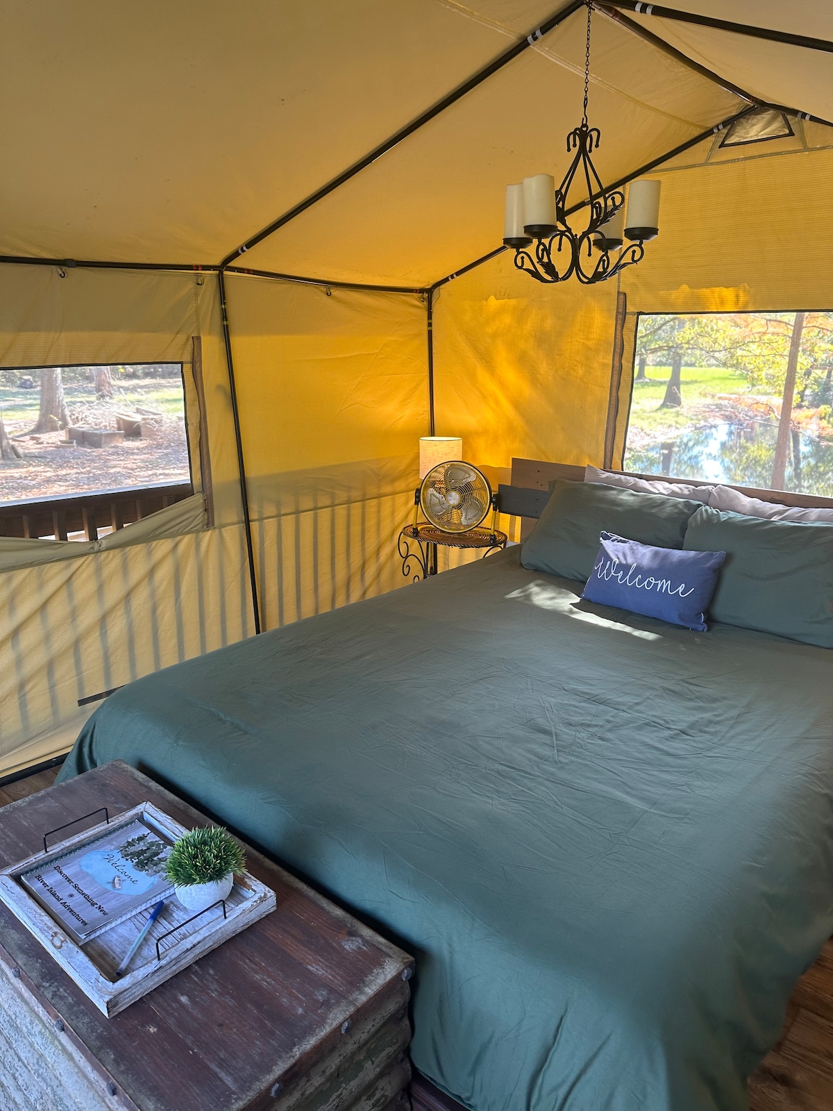 Secluded Forest Glamping Retreat Near Myrtle Beach Escape the noise of everyday life and settle into a peaceful glamping experience tucked away in the woods, just a short drive from Myrtle Beach. This private glamping tent offers the perfect balance of nature, comfort, and simplicity—ideal for guests who want to slow down, unplug, and enjoy something different.
