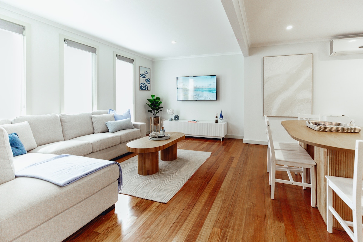 Laipni lūdzam Isle of Palms McCrae! Mūsu 2bdr piekrastes atpūtas vieta ir pastaigas attālumā no McCrae pludmales, bākas, veikaliem, labākajiem bāriem un restorāniem pussalā un īsa 10 minūšu brauciena attālumā no pussalas karstajiem avotiem. Palmsas sala ir ideāli piemērota jūsu nākamajām brīvdienām! Godalgotās vīna darītavas, ikoniskais Arthurs Seat Eagle un vēl daudz kas cits! Piedāvājumā: - 3 divguļamās gultas (Queen) - Individuāls interjera dizains - Wi-Fi - Pilnībā aprīkota virtuve/vannasistabas - Veļas mazgātava - Bārbekjū