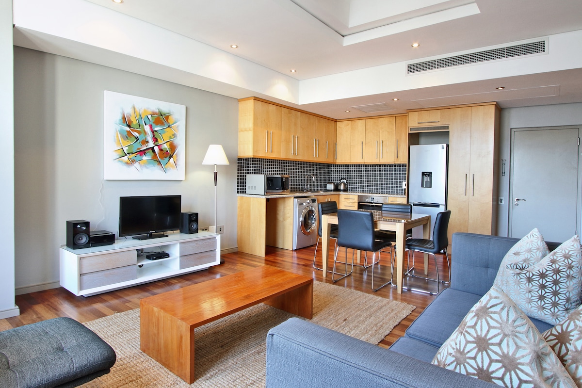 The kitchen is fully equipped with a dishwasher, microwave, washing machine, and dryer machine. The apartment has 2 bedrooms, 2 full bathrooms with both tub & shower, flat-screen TV. The lounge and master bedroom facing the beautiful ocean view and bring lots of natural light into these areas. Wifi- backup (Power-Station Dock). Popular points of interest are the boardwalk of Mouille Point, V&A Waterfront, Cape Town Soccer Stadium, The lighthouse, and many eateries just walking distance.