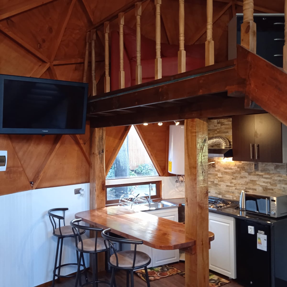 Mūsu namiņš ir ideāla tikšanās vieta starp dabu un komfortu. Atrodas drošā un privātā lauku vidē, laiks šeit rit lēnāk. Jūs varat pastaigāties pa mūsu bioloģisko dārzu, atpūsties, klausoties blakus īpašumam plūstošās upes čalošanu vai izpētīt apkārtni: mēs atrodamies dažu soļu (3 km) attālumā no skaistā Lanalhue ezera un ļoti tuvu (2 km) vēsturiskajam Kontulmo centram. Silvijas un Dona Humberto viesmīlība liks jums justies kā mājās.