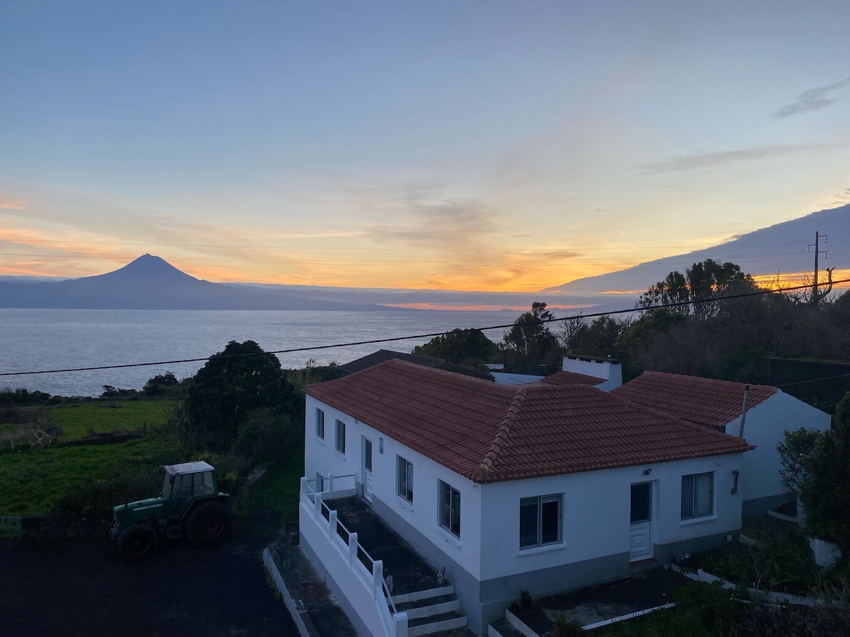 Peaceful Country Azorian Farmhouse in Rosais with views of the Sea and Pico. Go back in time to a simple way of life, enjoy the friendly people and healthy delicious food and explore a beautiful Island surrounded by the sea with magnificent mountains 10 min. to Velas, walking distance to local Restaurant, free wifi, fully equipped kitchen, two bedrooms each with a double size bed, the couch in the family room converts into a double size bed and a sitting bed in the living room is a twin size bed