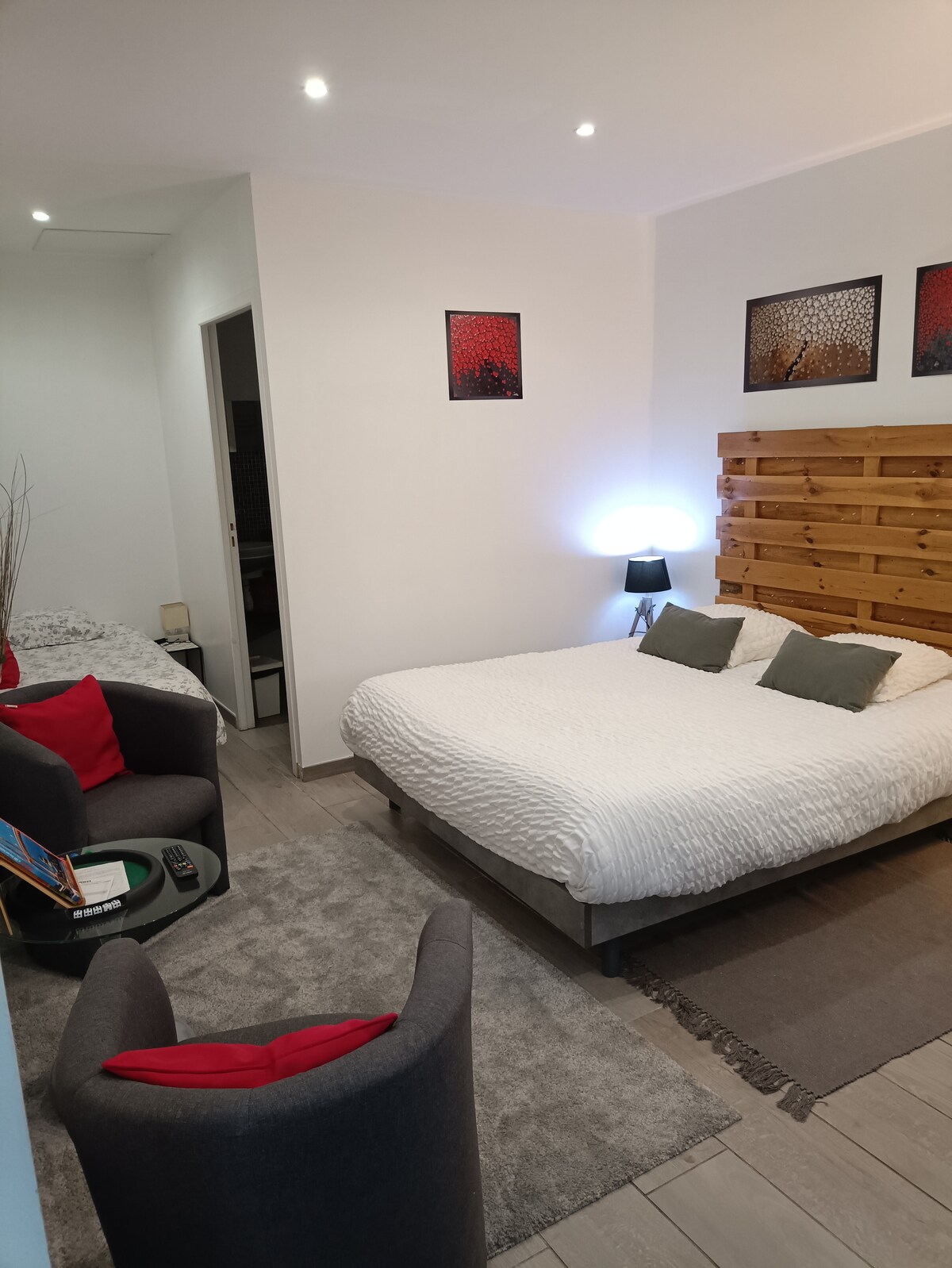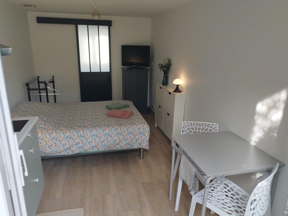 Neatkarīga studija, kas atrodas mūsu mājā, netālu no centra un ir pieejama no svētdienas vakara līdz piektdienas rītam, kas ir ideāli piemērota studentam darbam vai ceļojošam darbiniekam. Šī pilnībā renovētā 15 m2 studija ir lieliski aprīkota ar jaunu 140 cm gultu, atvērtu vannasistabu (dušu un tualeti), minivirtuvi. Jūs novērtēsiet mūsu mājokli ar ērtu gultu un neatkarību. /!\ STINGRI nesmēķē, mājas priekšā nedrīkst smēķēt.