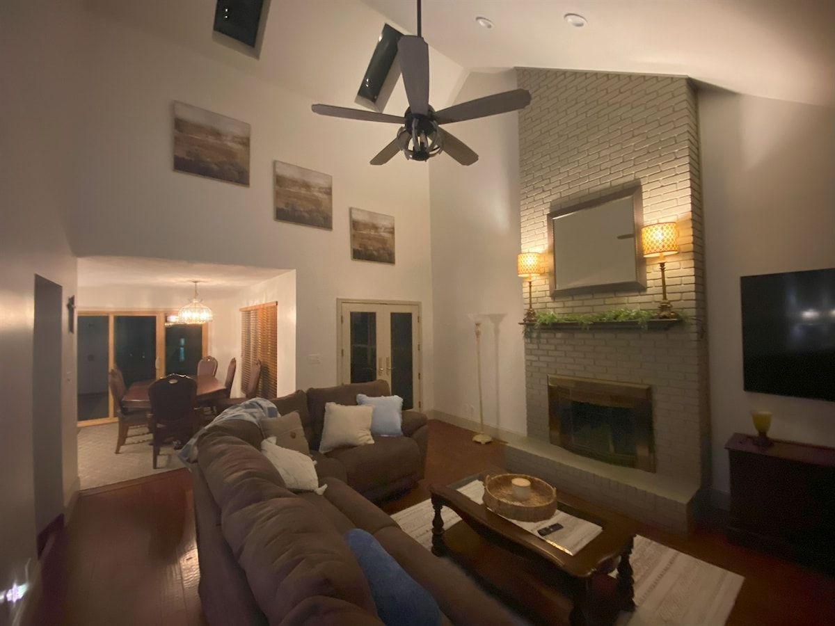 Escape to Sugar Creek Lodge — privāta atpūtas vieta pie ezera, kas atrodas mežā bez kaimiņiem abās pusēs. Izbaudiet mierīgus skatus, divus stāvus, lielu privātu piestātni ar laivu un ūdensmotociklu, kajakiem, ugunskura vietu un jaunām mēbelēm. Ātrs šķiedras internets lieliski piemērots attālinātam darbam. Trīs līmeņos katrā ir guļamistaba un pilna vanna. Pilnībā aprīkota virtuve, 2 ledusskapji, jaunas ierīces un veļasmašīna/žāvētājs. Tikai 5 minūtes no I-24 un 10 minūtes līdz pārtikas precēm — pilnīga nošķirtība, taču tuvu visam