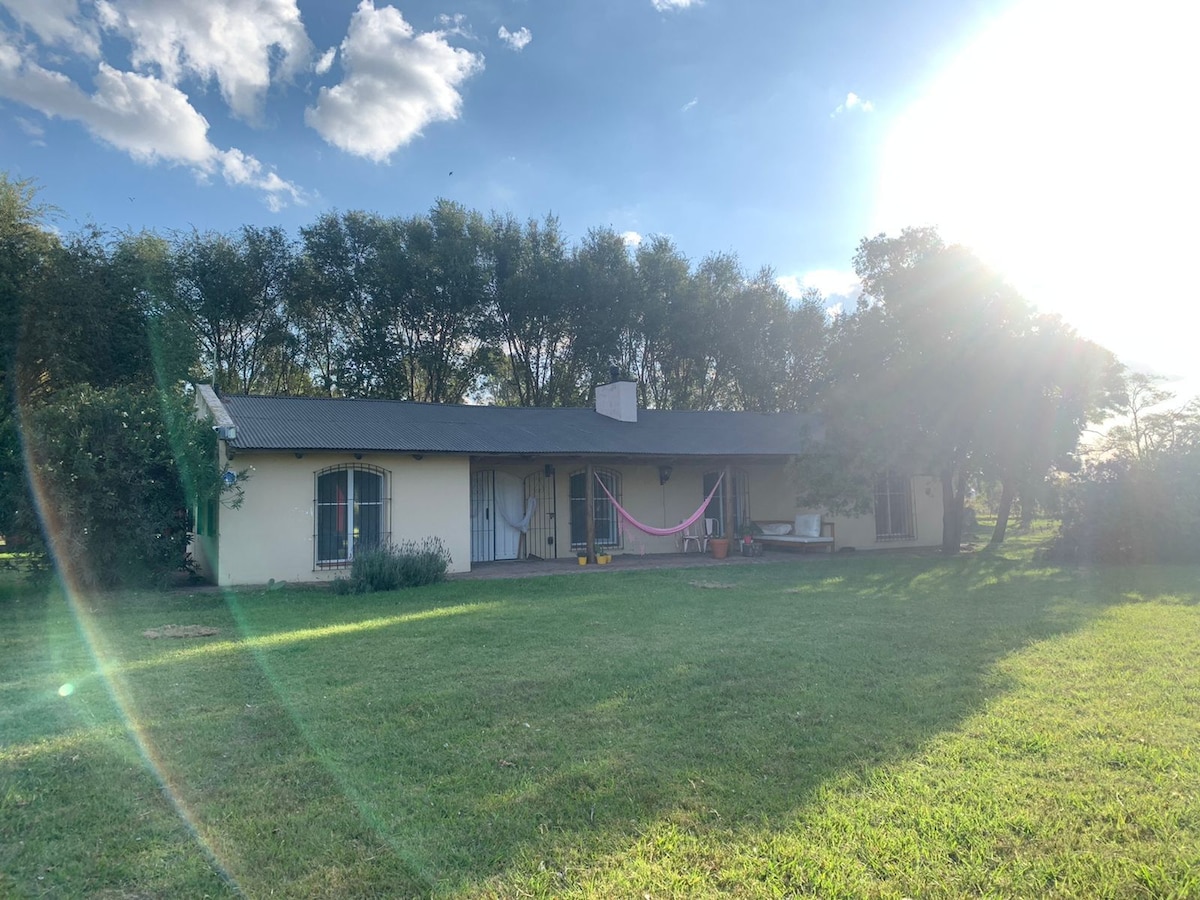 Discover La Soñada, a country house surrounded by nature and tranquility. Just 5 km from the town center, it offers privacy, comfort, and relaxation, with breathtaking sunsets and starry skies. Pet friendly. Located in a 2-hectare park, the house has been completely renovated and features 2 spacious bedrooms, 2 full bathrooms, a fully equipped kitchen, a dining and a living room. It also boasts a front and back porch, a barbecue area and laundry, all integrated into the natural surroundings.