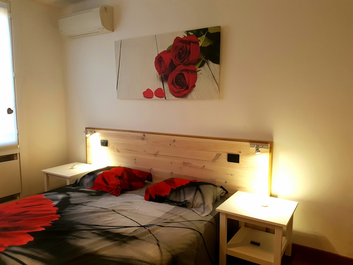 Divistabu dzīvoklis 50 kvadrātmetru platībā, parka priekšpuse, nesen izremontēts, pirmais stāvs, liela dzīvojamā istaba ar atvērtu virtuvi, kas aprīkota ar ierīcēm (tostarp veļas mazgājamo mašīnu un trauku mazgājamo mašīnu), privāta vannasistaba un divguļamā guļamistaba, WIFI. Dažu minūšu attālumā no mājām: lielveikals, bārs, restorāni, preses kiosks, veikali. Clinica Humanitas a soli 1,5 km attālumā Pietura 230 (Humanitas un Milan) ļoti tuvu.