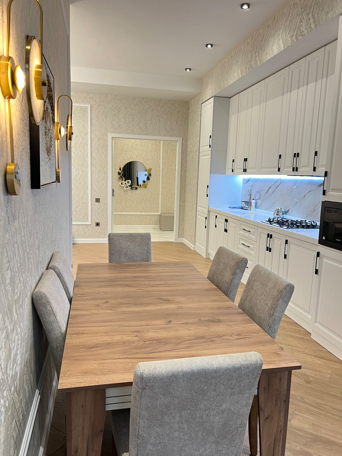 Šis pilnīgi jaunais, mēbelētais dzīvoklis, kas atrodas pašā Baku sirdī, tikai 5 minūšu attālumā no Nizami ielas, piedāvā komfortu un centrālu atrašanās vietu. 🛏 2 atsevišķas guļamistabas 🛗 2 jauni un ātrgaitas lifti 🛠 Jauna renovācija – viss no nulles Zem mūsu dzīvokļa, kas atrodas 7 Points ēkā: 🏥 slimnīca, 🛒 lielveikals, visas telpas ir pieejamas ☕ kafejnīcai un jūsu ikdienas vajadzībām. 📍 Centrāla atrašanās vieta – piekļuve visur kājām 📶 Ātrais internets 🛎 Ēkas papildērtības visu diennakti