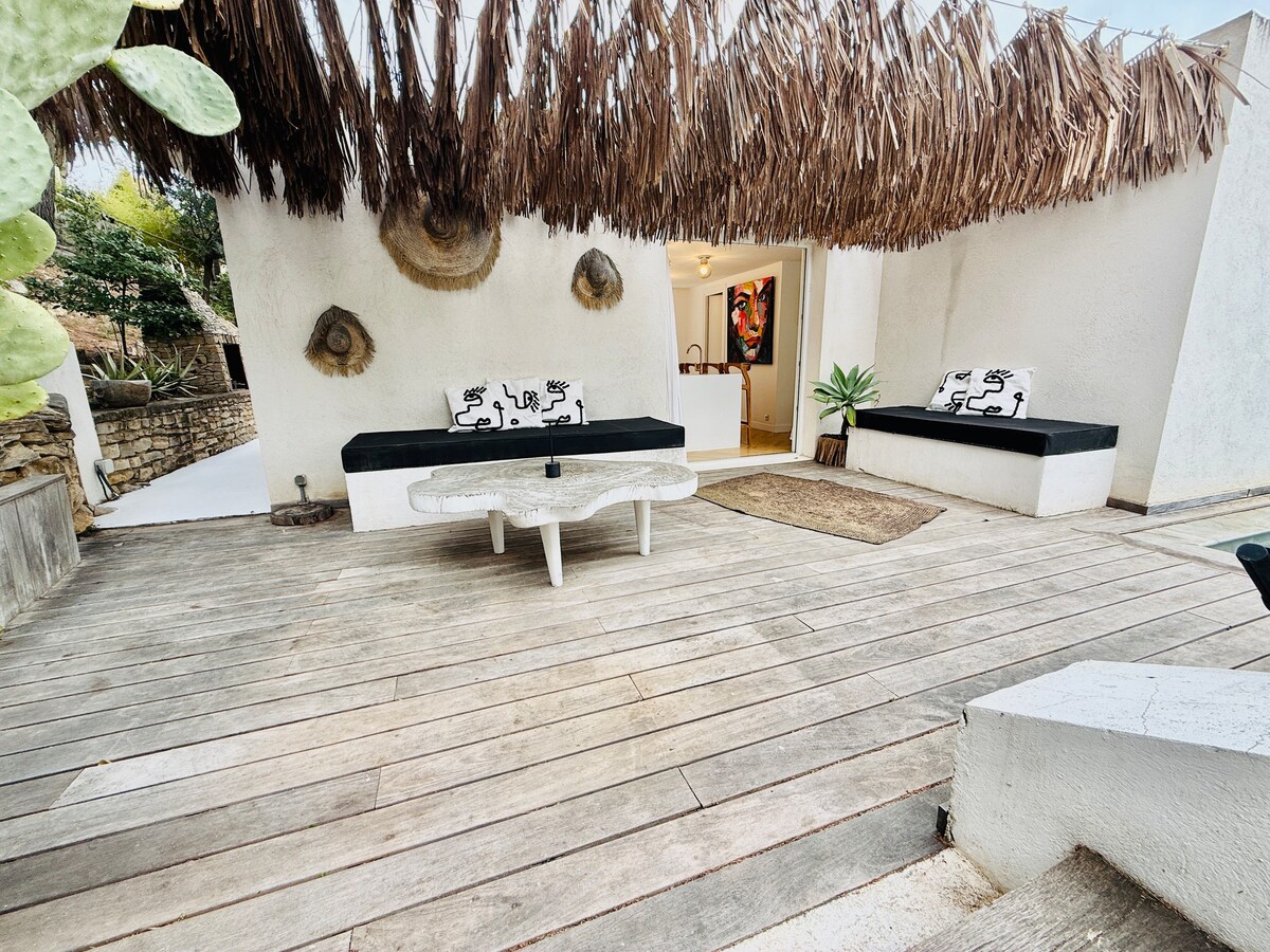 SPA ir privāts un pieejams visu gadu 🫧 Vēsturiskā akmens māja zem priedēm (lauku stila Provansas stila interjers) ar lielo privāto dārzu un džakuzi ar skatu uz pakalniem ir ideāli piemērota pāriem, sportistiem, māksliniekiem, dabas mīļotājiem, kuri vēlas uzturēties visu papildērtību tuvumā un izbaudīt autentiskās Marseļas idillisko vidi. Pārgājienu un kāpšanas takas, kalnu riteņbraukšana utt. Tikai dažu soļu attālumā no durvīm. Mājā ir gaisa kondicionētājs 😊