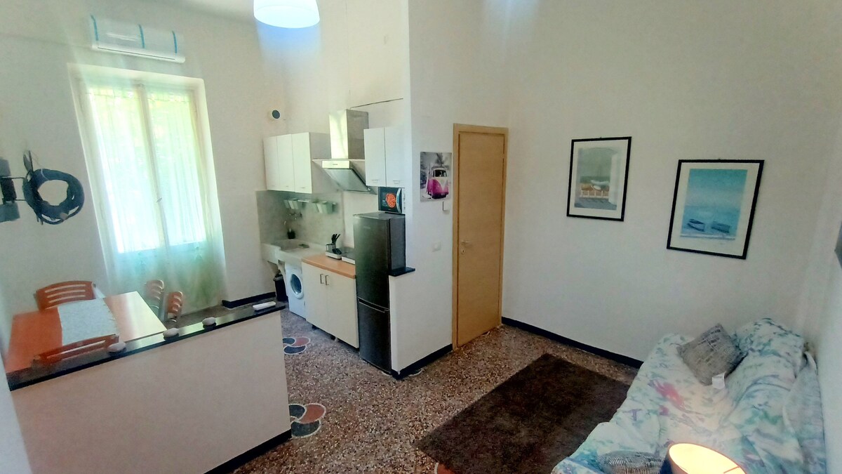 Recco netālu no Camogli 30 m no jūras elegantā vēsturiskā ēkā ar freskām griestu grīdām Dženovas smiltīs ir prasmīgi izremontēts 100 kvadrātmetru dzīvoklis, kas sastāv no divām guļamistabām Divas vannasistabas Dzīvojamā istaba ar kamīnu, liela virtuve ar iespaidīgu skatu uz līča dārzu ar grilu un atpūtas zonu, privāta piekļuve pludmalei ar kajaku atpūtas namiņu un SUP privātu boksa stāvvietu trešajā stāvā bez lifta ar gaisa kondicionētāju visās istabās