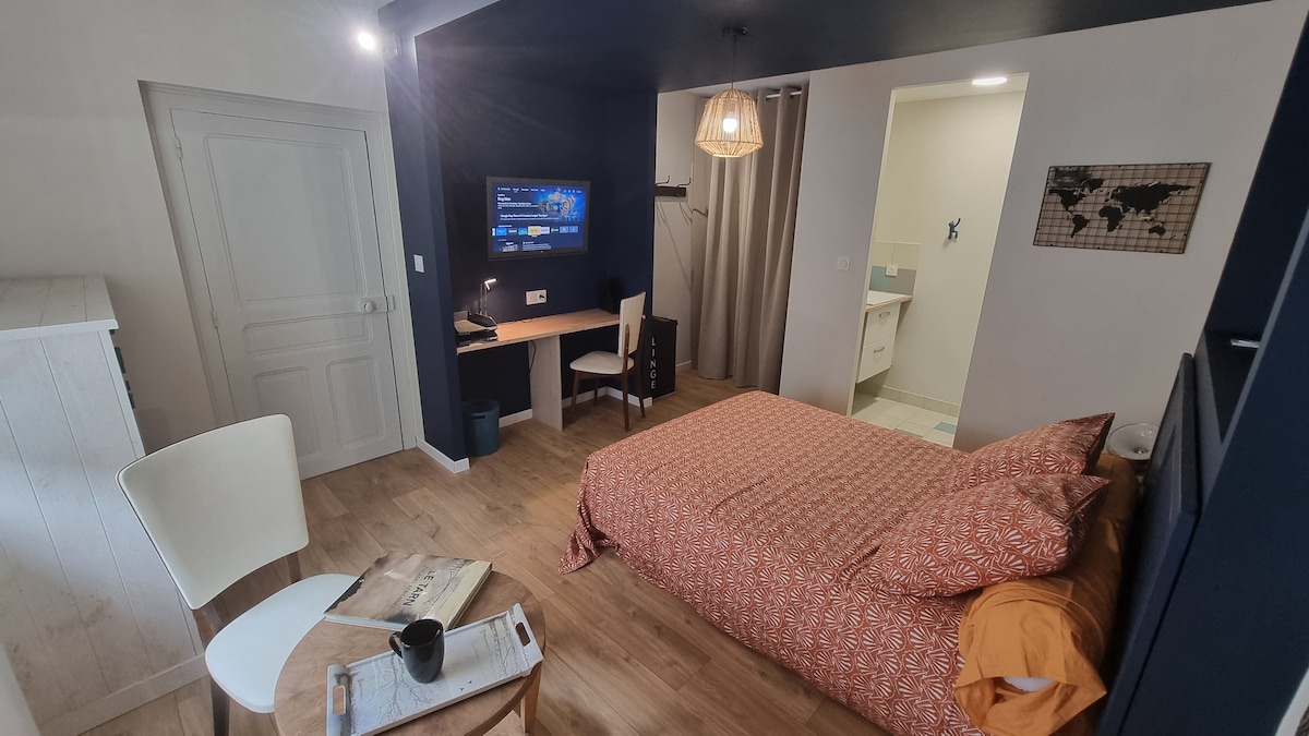 Vēsture un modernitāte! Šis plašais dzīvoklis, kas ir renovēts un ar visām modernajām ērtībām, atrodas savrupmājā, kas klasificēta kā vēsturisks piemineklis pašā pilsētas centrā. No visām istabām paveras skats uz iekštelpu pagalmiem. Mājokļa klusums piedāvā relaksējošu uzturēšanos un paziņo par skaistām pastaigām un atklājumiem pilsētā. Kopā ar ģimenes vai darba kolēģiem jūs novērtēsiet visas papildērtības. Autostāvvieta privātajā pagalmā ir rezervēta.