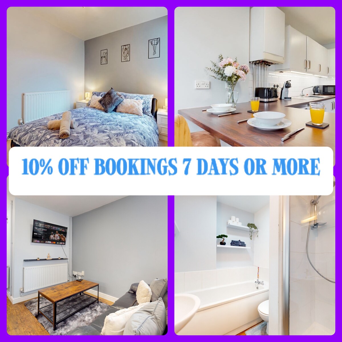Mājīgs dzīvoklis Kārdifā ar vannasistabu + autostāvvietu