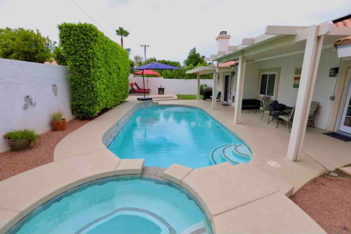 -> 5-mins to downtown, airport, casinos, golf courses, stores! -> Featured on Business Insider as top Airbnb in PS! -> Completely remodeled with high-end fixtures and features! -> Fully equipped chef's kitchen -> Large 7ft deep pool and 10-person spa -> Outdoor fire pit -> Patio with BBQ -> High speed wifi with internet enabled TVs -> Fresh linen, towels, toiletries and essentials provided -> Washer & Dryer -> Professionally cleaned every time -> Parking for 3 cars City ID #4475 Permit #7637