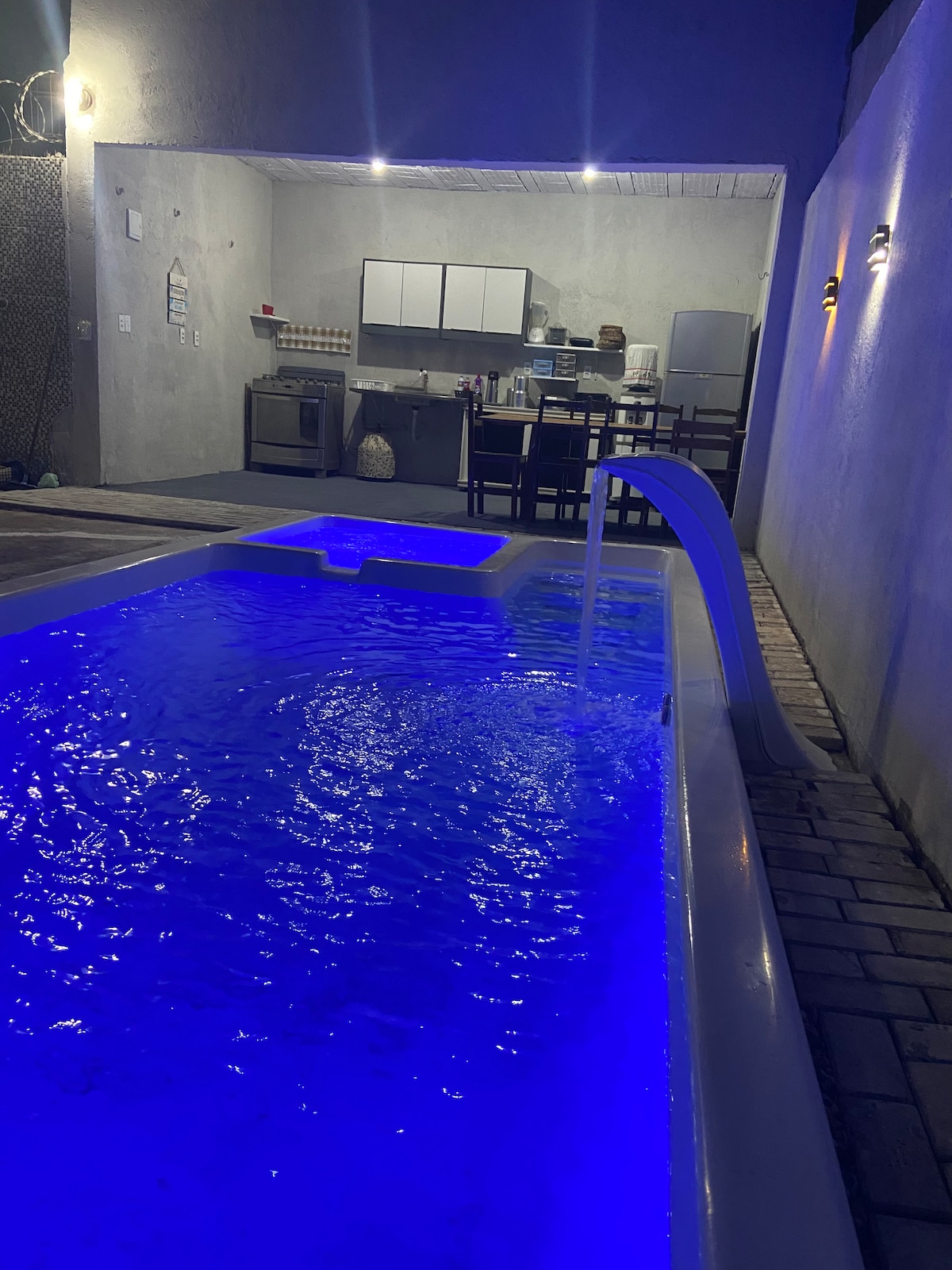 Wonderful house just 20 meters from the beach, in the best region of Tabuba/Cumbuco, close to supermarket, pharmacy and beach stalls/kiosks. The house has five suites, three of which are high standard suites with air conditioning. Three of the suites have hot water showers. Safe house with camera system and caretaker who lives on site. Modern kitchen. Large leisure area and garden with barbecue. Private parking for two cars. Access to free internet and 50-inch Smart TV.