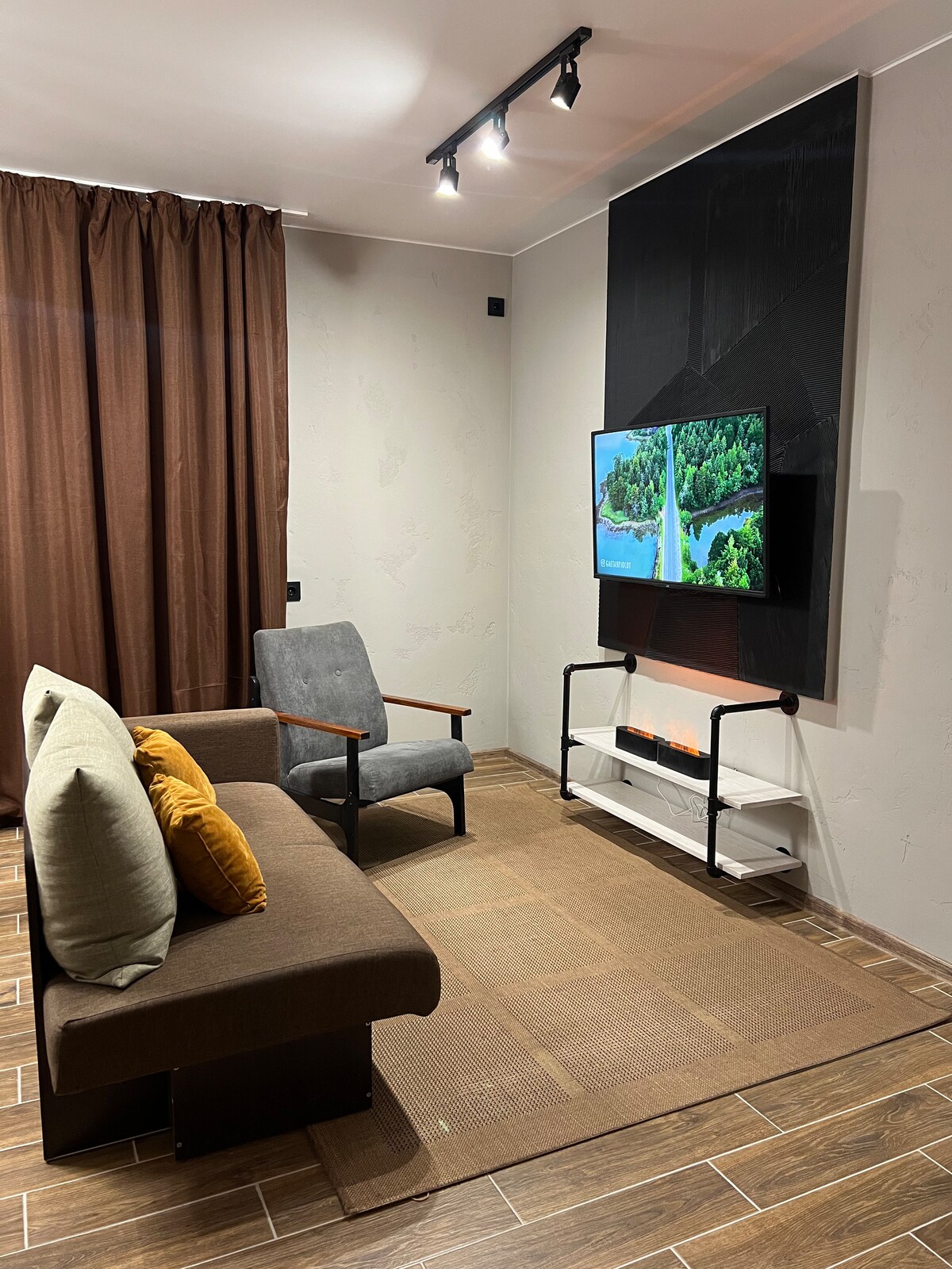 Šis ir unikāls dizainera dzīvoklis Tiraspolē. Kopējo stilu un katru interjera detaļu veidojām un pārdomājām personīgi. Augstas kvalitātes mēbeles un santehnika, forši aksesuāri un unikāls dizains. VIETA, KUR VĒLATIES ŠEIT ATGRIEZTIES. Mums interjers ir mūsu dzīvesveida vizuāls attēlojums. Minimālisms, plašums un elegance - tas, ko mēs vadām, veidojot savus projektus.
