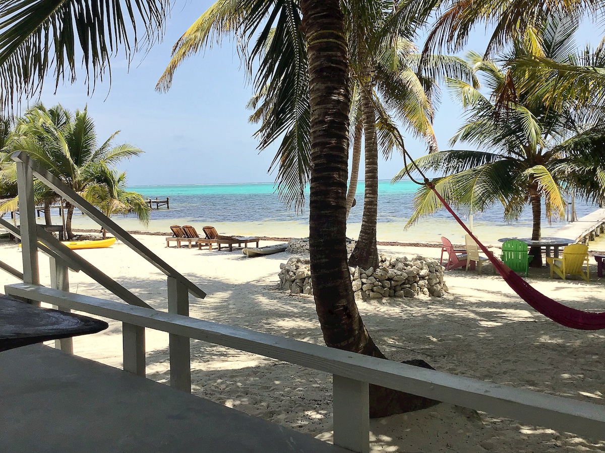 Sveicināti! Romantiska Casita ar satriecošu skatu uz Lielo barjerrifu un Karību jūru. Kazita atrodas starp kokosriekstu palmām Ambergris Caye smilšu pludmalē. Kādreiz tā bija kokosriekstu birzs un ir 30 minūšu brauciens ar golfa ratiņiem no pilsētas. Slavenā Slepenā pludmale ir mūsu pagalms (15 min ar golfa ratiņiem). Mēs esam zelta standarts - Belizas tūrisma dēlis. Jūs varat atrast jūraszāles/sargasumu pludmales krastā no sezonālām straumēm un laika apstākļiem reģionā.