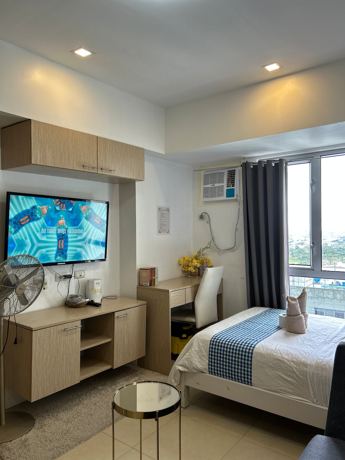 Nakšņojiet šajā burvīgi stilīgajā studijas tipa dzīvoklī, kas ir pilnībā mēbelēts un gaumīgi iekārtots ar tēlotājmākslas izlasēm. Šis stilīgais mājoklis atrodas netālu no galamērķiem, kas noteikti jāredz Sebu pilsētā un Mandaue pilsētā. Tā atrodas netālu no baznīcas, slimnīcas, bankām un tikai 30 minūšu attālumā no Maktanas lidostas un tikai 10 minūšu attālumā no Ayala centra un SM City Cebu iepirkšanās centriem. Tajā ir internets, divguļamā gulta, REF, viedtelevīzija, darba galds, indukcijas plīts, rīsu plīts, šķīvji, krūzes un piederumi. Komplektā ir dvieļi un palagi.