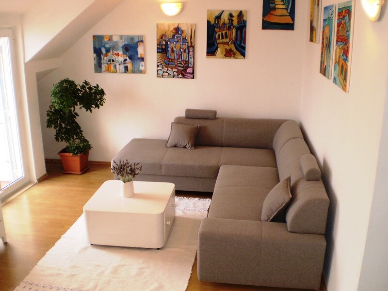 Ir jāpaziņo par ierašanos ar automašīnu. Dzīvoklis atrodas 50 kvadrātmetru platībā, un tas sastāv no vienas divguļamās guļamistabas, virtuves, dzīvojamās istabas ar dīvānu kā rezerves gultu divām personām, vannasistabas un diviem balkoniem ar brīnišķīgu skatu uz vecpilsētu. Daudz kāpņu varētu būt izaicinājums. Bezmaksas autostāvvieta.