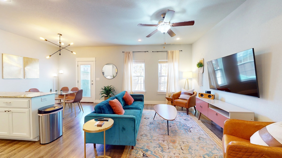 Your home away from home! Located just 2 miles from downtown Bentonville and only a half mile from Coler MB Preserve and the Greenway that connects all of NW Arkansas. Minutes away from great golf courses! 2700 sq ft: 3 full bedrooms and baths, 2 car garage with bike parking, 2 living spaces, dining room, bar seating, smart TVs, WiFi, coffee bar, washer/dryer, and outdoor deck w/ seating. This charming house can be your home away from home while you're in Bentonville.