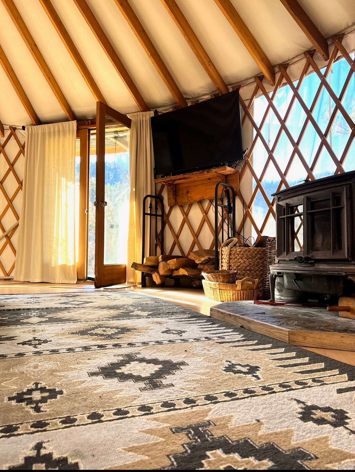 Ieskaujiet sevi ar dabu, uzturoties mūsu Serenity Yurt, kas atrodas nelielā birzī 20 akru platībā. Tajā ir krāšņs jumta logs, daudz logu un skaists apgaismojums. Mājīga vieta, kur pulcēties, bet pietiekami plaša, lai justos ērti. Lieliska enerģija! Ietver gāzes kamīnu, mini ledusskapjus, mikroviļņu krāsni, ūdeni pudelēs un līdz sešām polsterētām gultām. Gultasveļa un spilveni – 35 ASV dolāri par komplektu, nakšņošana – 55 ASV dolāri par personu, iepriekš apstiprināti mājdzīvnieki – 35 ASV dolāri par dzīvnieku. Ja vēlaties pievienot papildu viesus dienas laikā, lūdzu, pieprasiet informāciju par cenām.