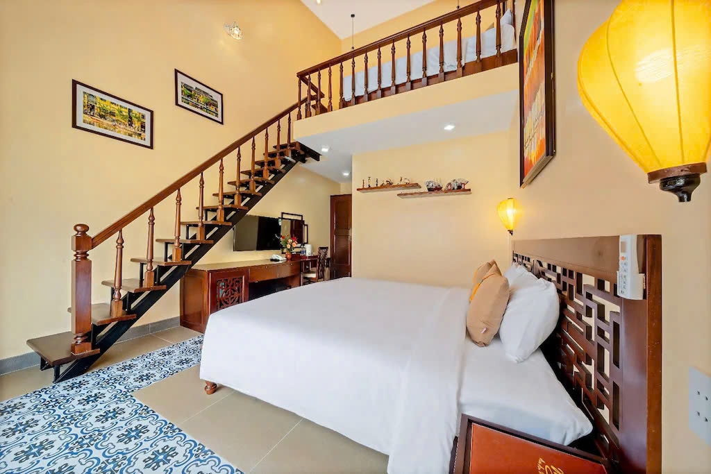 This unique place has a style all its own. B’Hoian Resort is a peaceful riverside retreat just 10 minutes from Hội An Ancient Town by Motorbike. Designed in warm golden tones inspired by local heritage, it offers comfortable rooms, lush gardens, and a relaxing atmosphere. Guests enjoy free access to the outdoor swimming pool, perfect for unwinding after exploring. Ideal for families and couples seeking charm, comfort, and tranquility in a beautiful natural setting.