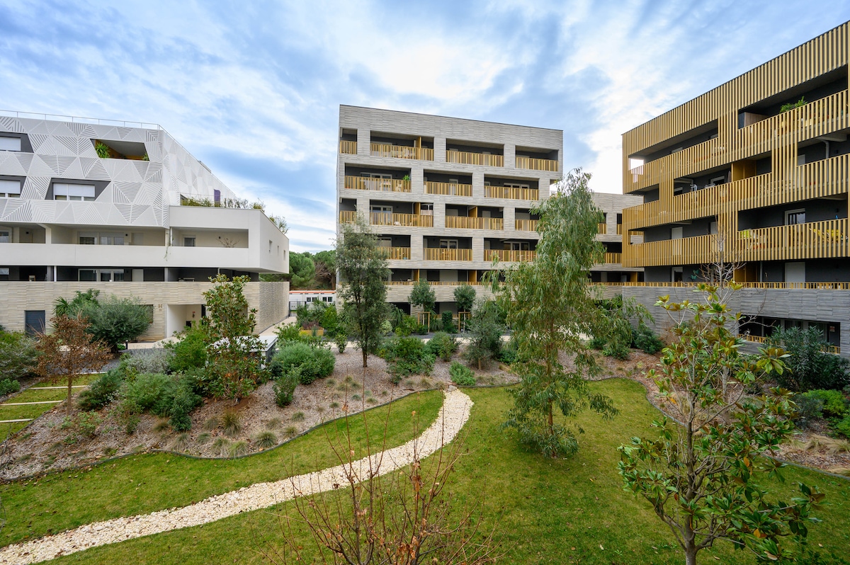 Atpūtieties šajā jaunajā , plašajā , klusajā un ērtajā mājoklī. Jūsu drošībai jūs gaida autostāvvieta drošā garāžā. Privātā un labi izvietotā rezidencē ( šoseja 5 minūšu attālumā, tramvajs 7 minūšu attālumā, 5 km attālumā no Monpeljē pilsētas centra un 15 minūšu attālumā no jūras). Dzīvoklis ir pilnībā aprīkots (nodrošināti dvieļi, kafija ) Ļaujiet izmēģināt tīru Zen dekoru un laika gaiss 🤩🤩 Uzturēšanās laikā jūs būsiet mājās. Gaidīsim jūs ciemos.