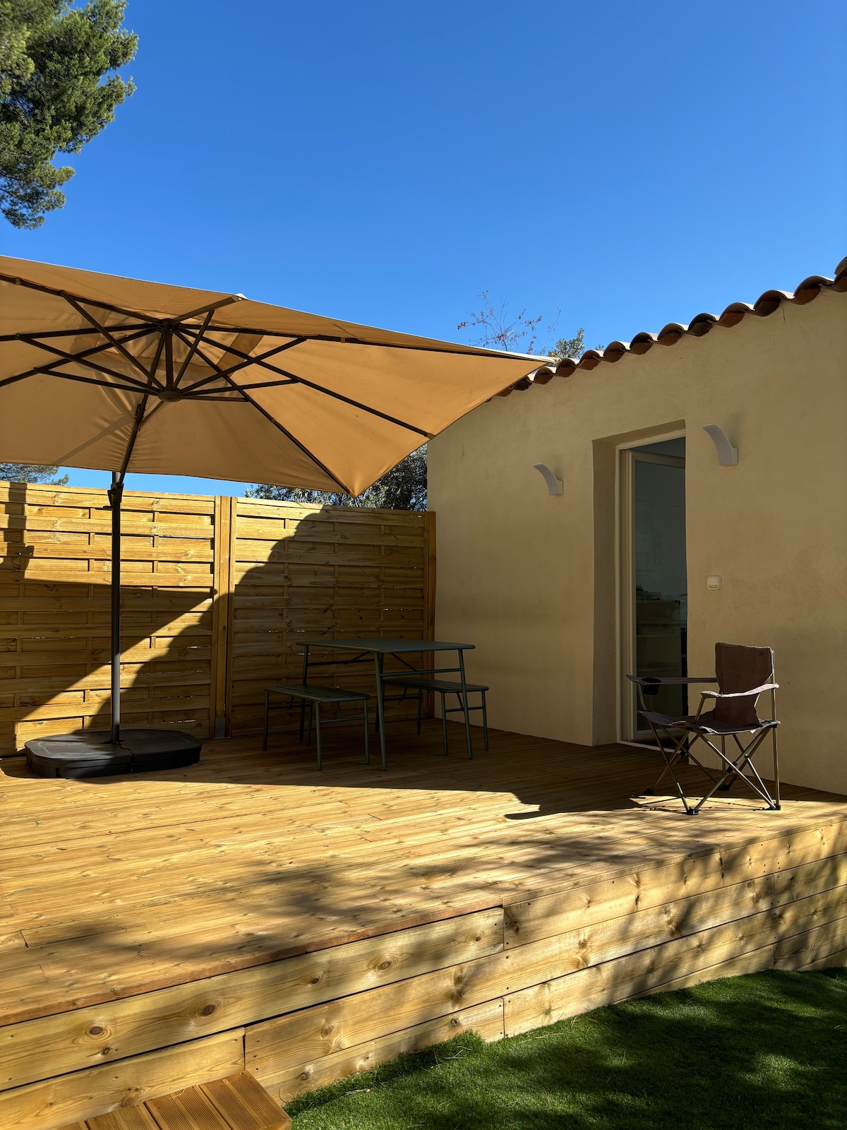 ❤ Ierašanās 100% Autonomi ❤Bright, kluss un nestled zaļā vidē Aix lauku, šis pilnīgi neatkarīgs nams, kas atrodas mūsu īpašuma 4000 m² sirdī, ir pilnībā aprīkots un bauda neatkarīgu un privātu piekļuvi. • Baseins/džakuzi 10 m² platībā (✓privāta ✓ apsildāma) • Pilnībā aprīkots ar gaisa kondicionētāju • 1 guļamistaba 20 m² • 1 vannasistaba (✓duša) • Ir aprīkota virtuve • Privāta terase • Veļas mazgātava • Mājsaimniecības veļa • Privāta piekļuve