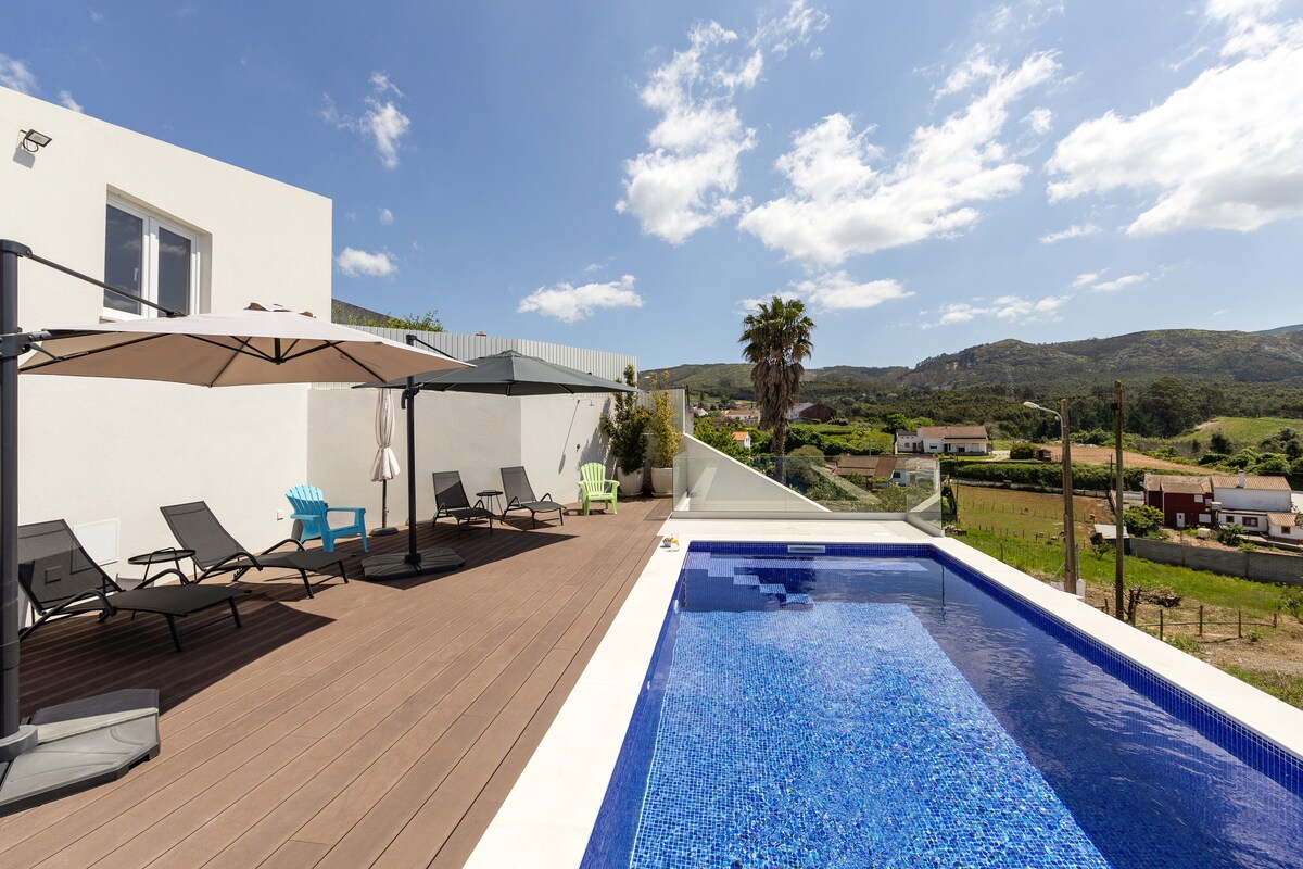 Izbaudiet elpu aizraujošus skatus uz Sanmartino līci, Tornadas upes ieleju un mandeļu kokiem klātos pakalnus no šīs stilīgās 3 guļamistabu villas. Atpūtieties divās plašās terasēs, iegremdējieties apsildāmajā baseinā (ar saules enerģiju apsildāms aprīlis-oktobris) vai atpūtieties jaunajā privātajā burbuļvannā zem zvaigznēm. Villa atrodas mierīgā, balti mazgātā ciematā, tikai īsas pastaigas attālumā no kāpu pilnās pludmales, un to ieskauj priežu klāti pakalni, kas ved uz Atlantijas okeāna piekrasti. Tikai 60 minūšu brauciena attālumā no Lisabonas lidostas.