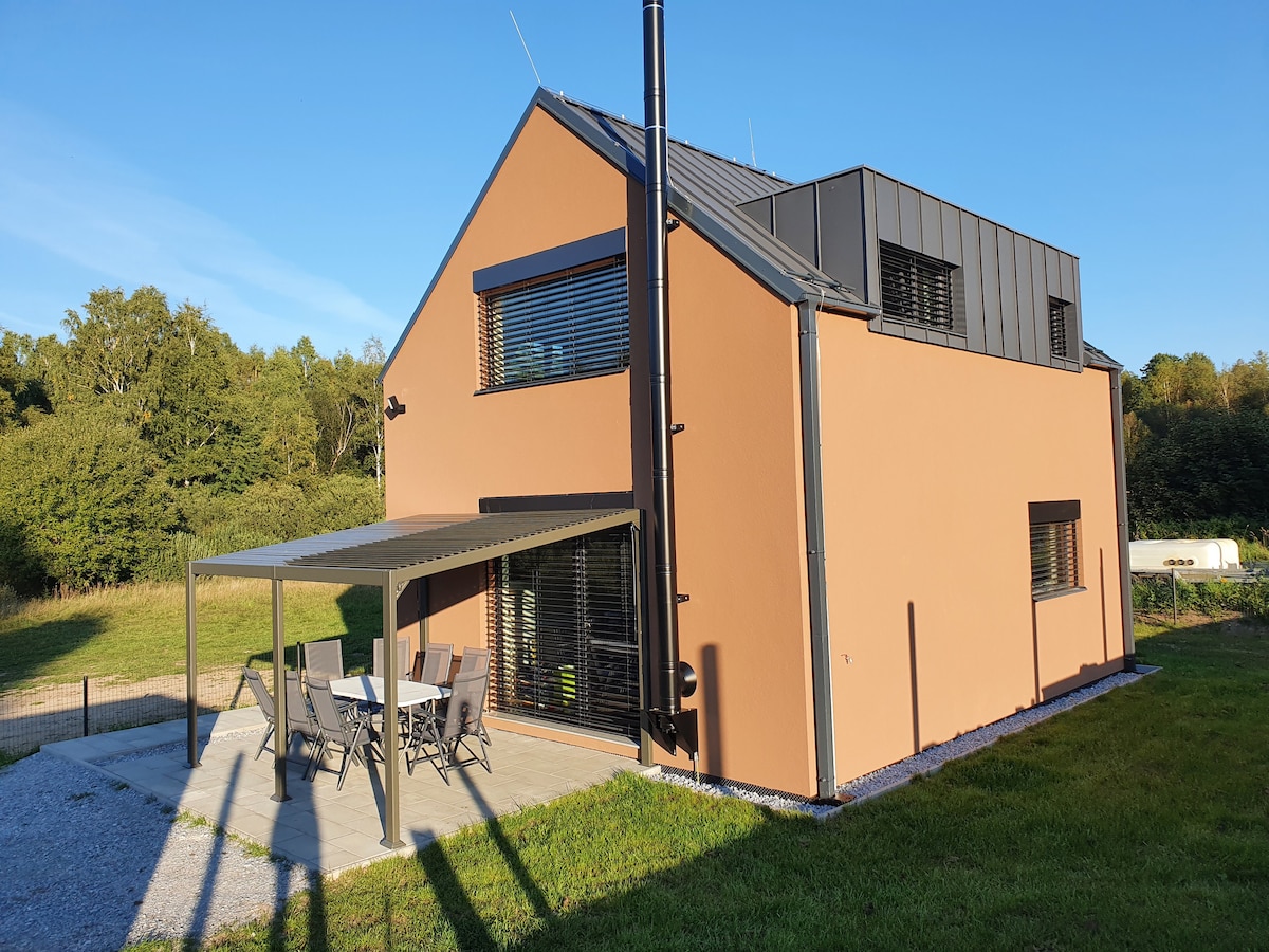 Dzīvoklis atrodas jaunā pasīvajā dupleksā, tā grīdas platība ir 130 m2 un 4+kk plānojums. Tajā ērti guļ 8 pieaugušie, bērni var uzņemt 4 papildu gultas un ceļojuma gultiņu mazajiem. Augšstāvā ir trīs istabas, pirmajā stāvā ir dīvāngulta. Pie mājas ir divas autostāvvietas un slēpju un velosipēdu glabātuve. Izmitināšana ir īpaši piemērota vienai līdz divām ģimenēm ar bērniem. Māja atrodas minūtes gājiena attālumā no brieža pie meža. Piecu minūšu laikā varat doties uz Lipno nad Vltavou tūrisma centru.