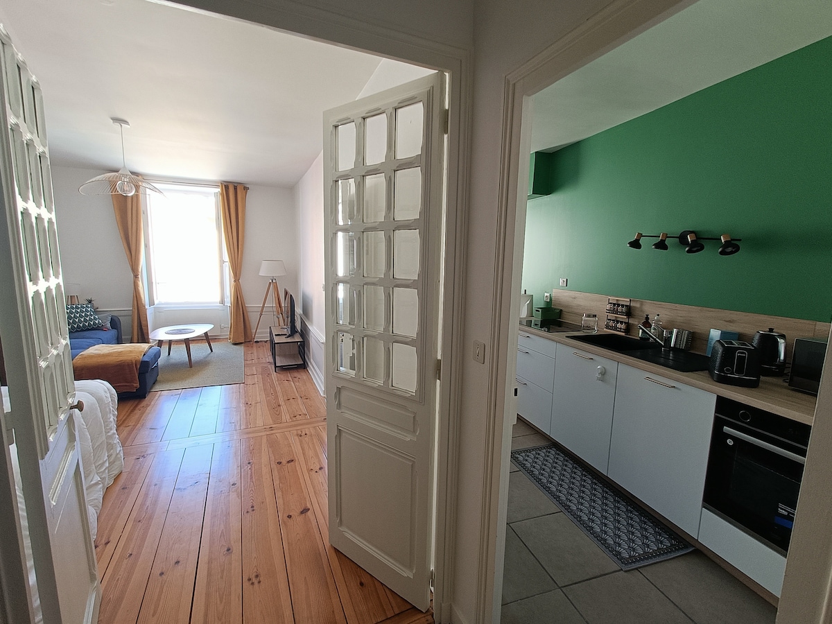Renovēts dzīvoklis, kas atrodas dzīvojamās ēkas 1. stāvā pašā Vellave pilsētas sirdī. Gaišs un kluss ar skatu uz Place des Halles un tirgu sestdienu rītos. Virtuve ir labi aprīkota, un tajā ir kvalitatīva gultasveļa, gultasveļa un dvieļi. Wi-Fi un TV naktsmītnē! Šajā skaistajā apkaimē netālu atrodas visi papildērtību veikali. Autobusu/autostāvvietu pieturas tuvumā. Dīvānu var pārveidot par gultu ar 140 X 190 matrača virsmu.