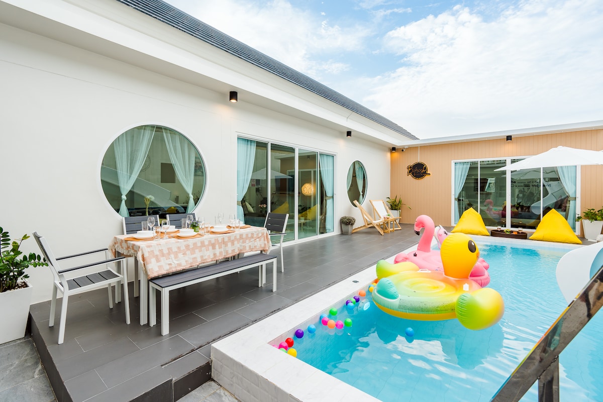 Luxury 3 bedroom, nice breeze, Private Pool Villa, only 10 minutes walking distance to the ocean. This is your perfect home away from home for family time, friends fun time, couple romantic getaway, even your alone time getaway from cold, busy or messy environments, company outing, and all. Namphrik & Namgang, 2 fun & friendly sisters who are founders, world travellers and animal lovers would love to welcome you all and your beloved pets to our homie beach house!!!
